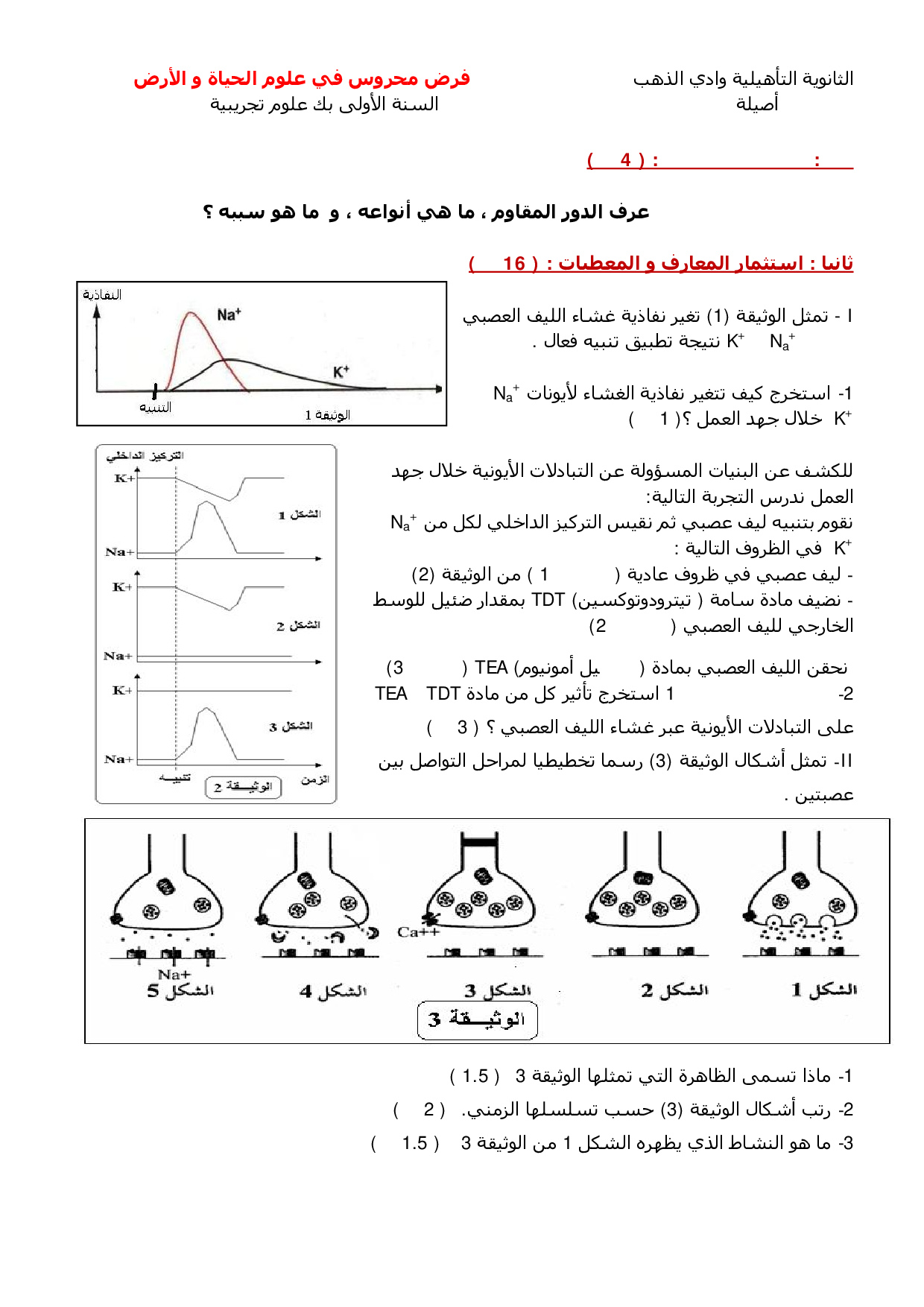 علوم الحياة والارض: الأولى باك علوم تجريبية