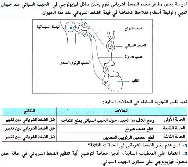 تمارين محلولة: تعميم مفهوم الاندماج العصب هرموني - تنظيم الضغط الشرياني والحفاظ على التوازن المائي المعدني