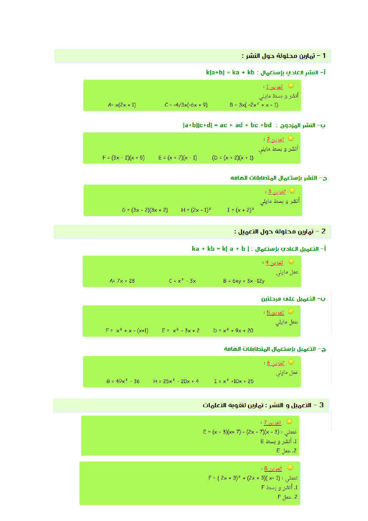النشر والتعميل - سلسلة التمارين 2