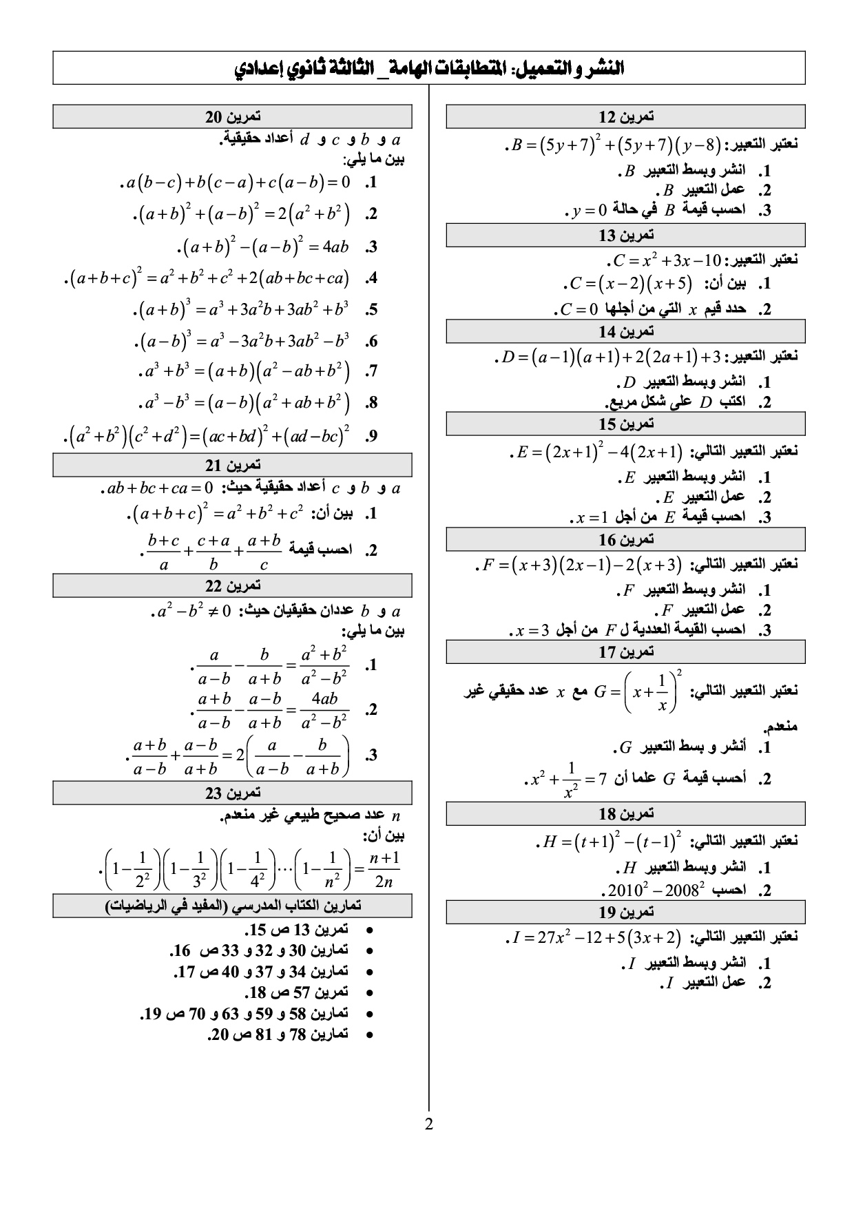 النشر والتعميل والمتطابقات الهامة - تمارين غير محلولة 1