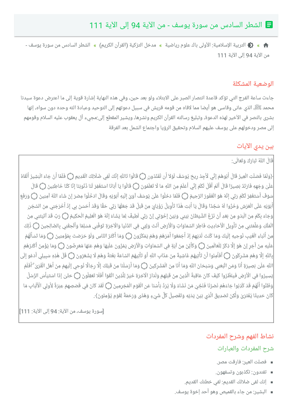 الشطر السادس من سورة يوسف - من الآية 94 إلى الآية 111