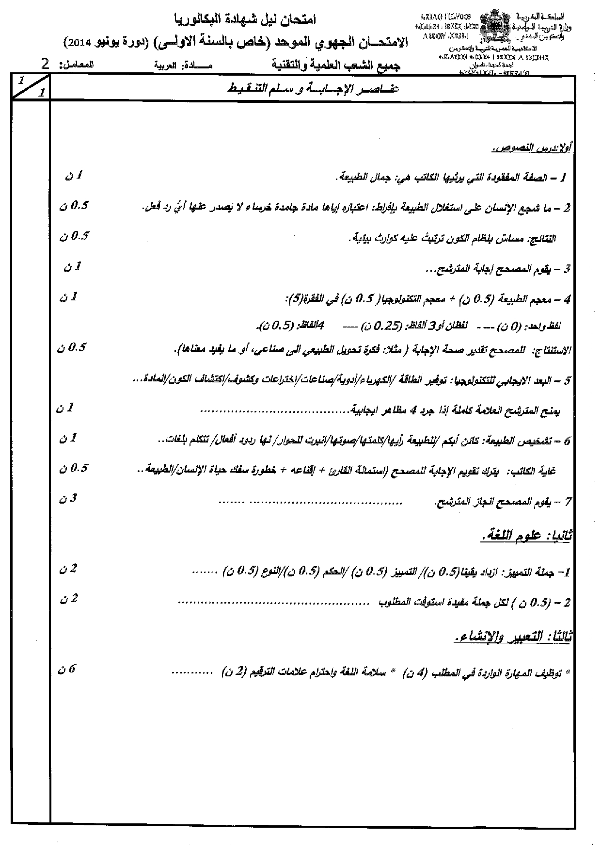 اللغة العربية: الأولى باك علوم وتكنولوجيات كهربائية