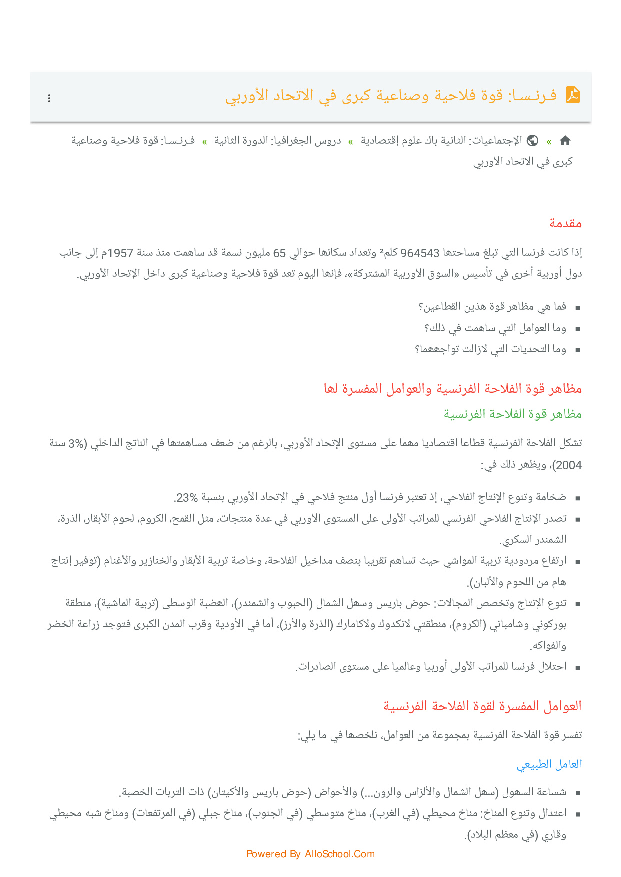 فرنسا - قوة فلاحية وصناعية كبرى في الاتحاد الأوربي