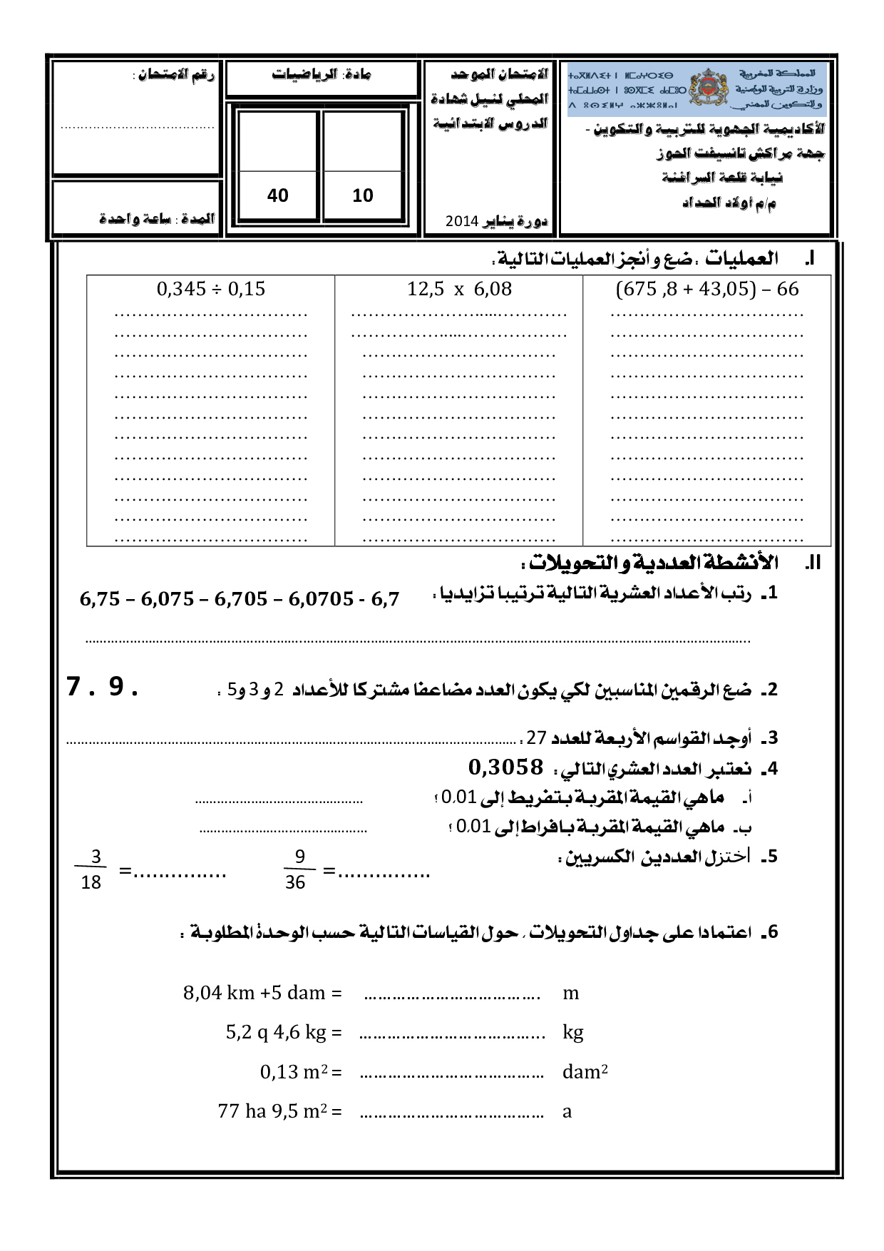 الرياضيات: السادس إبتدائي