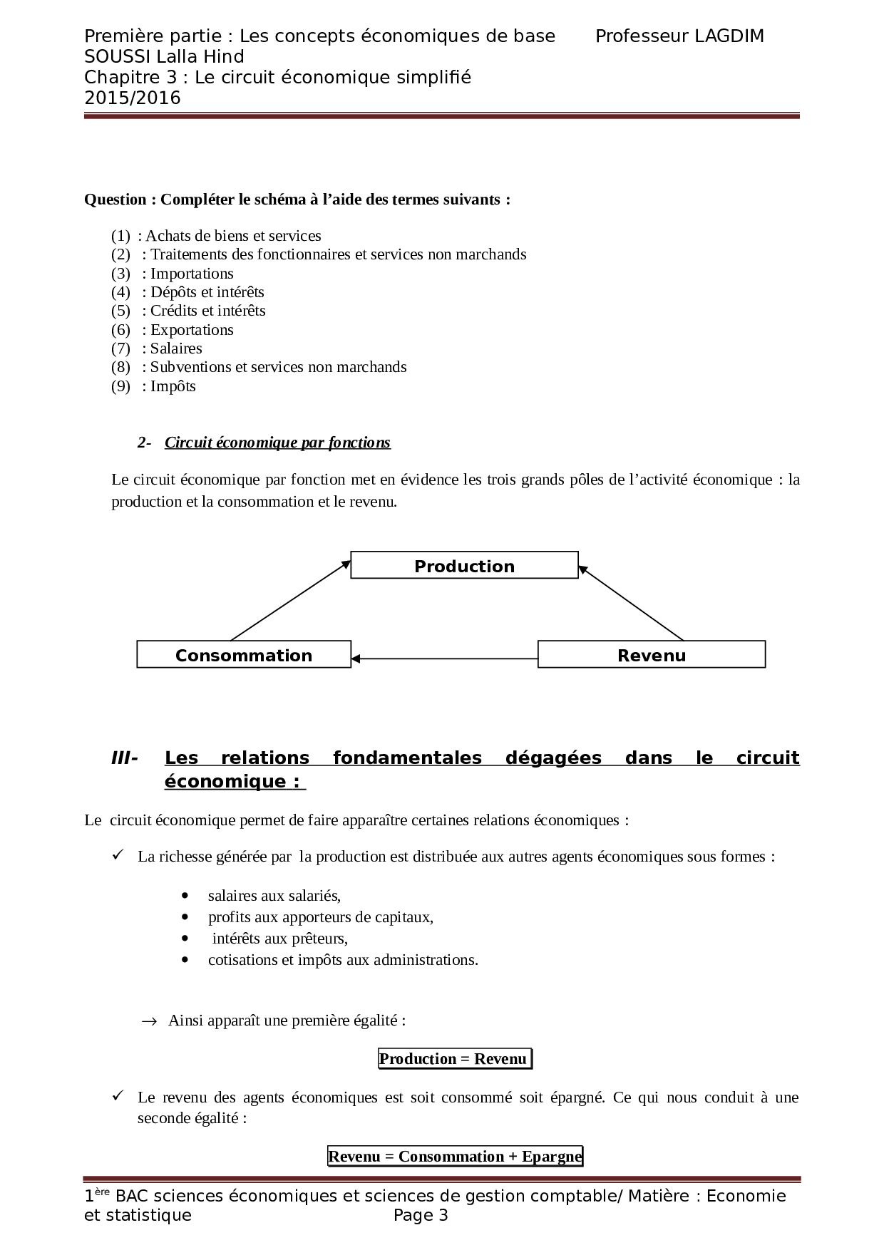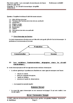 Chapitre 3: Le circuit économique simplifié - Corrigé