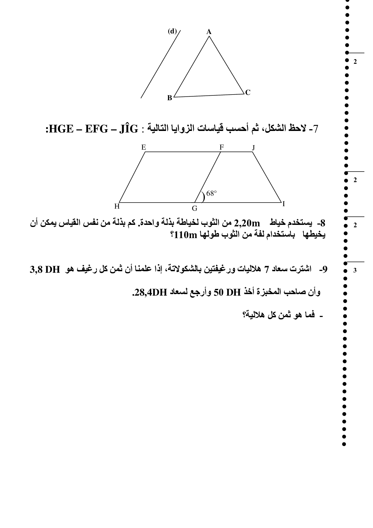 الفرض 2 نموذج 6 - الرياضيات سادس إبتدائي الدورة الأولى