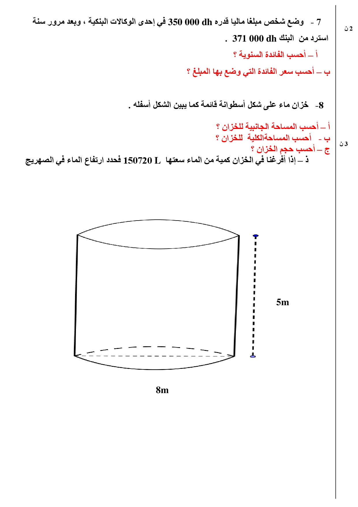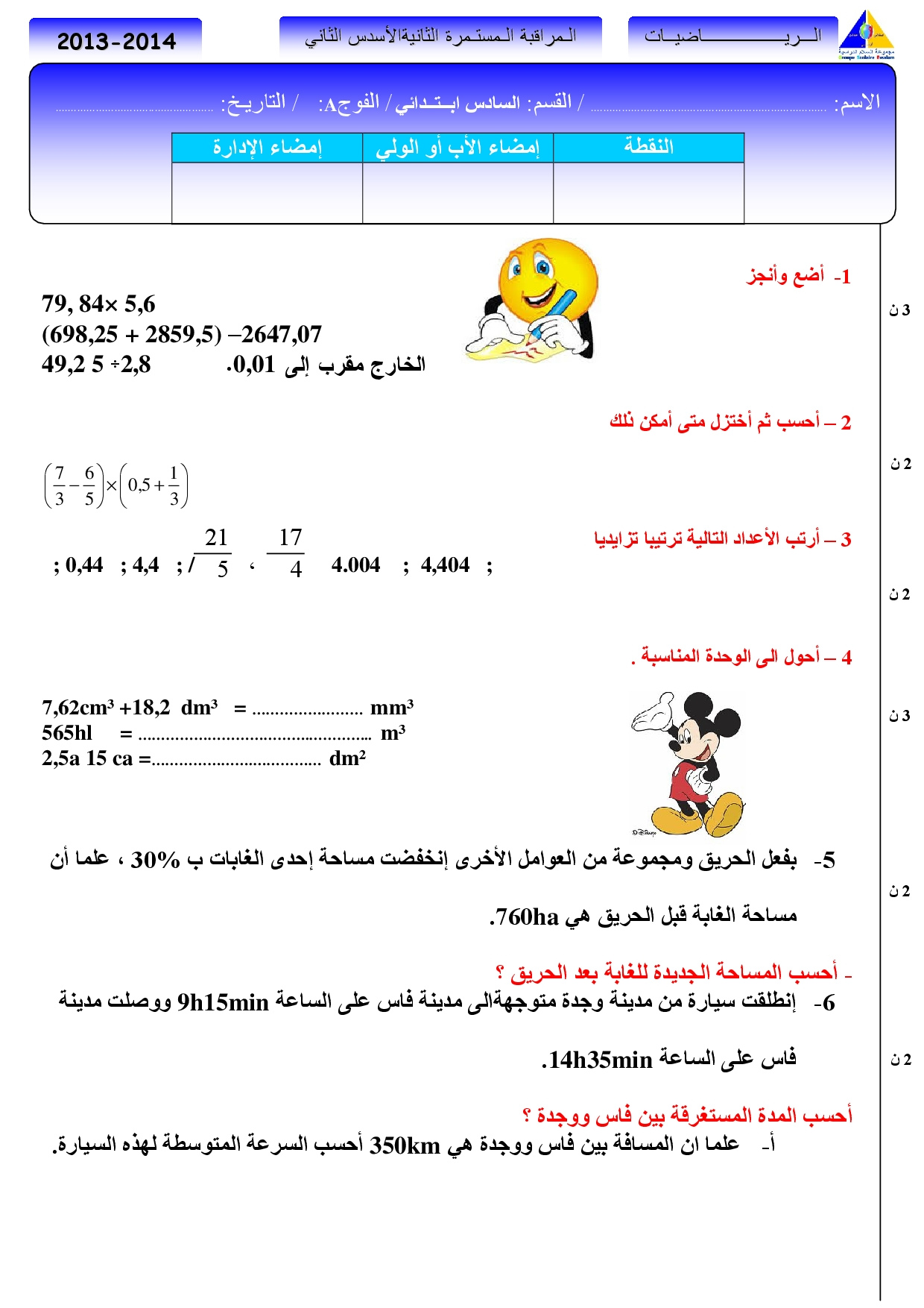 الفرض 2 نموذج 3 - الرياضيات سادس إبتدائي الدورة الثانية
