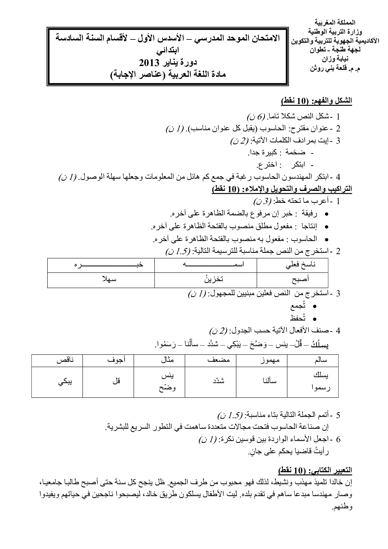 م. م. قلعة بني روثن مديرية وزان 2013 - التصحيح