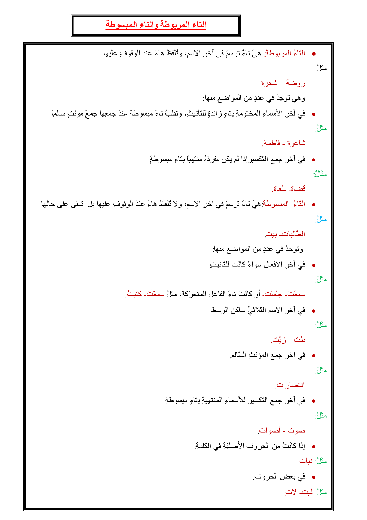 التاء المربوطة والتاء المبسوطة