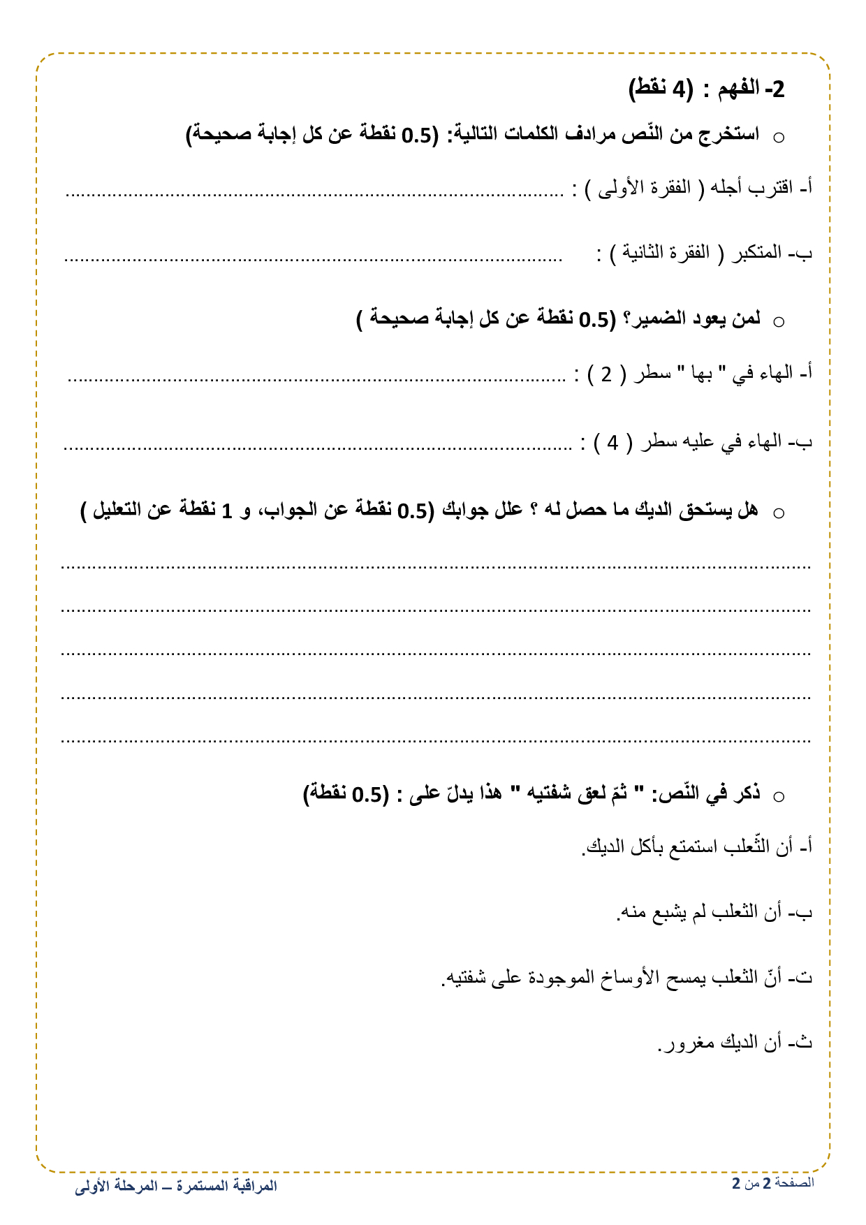 الفرض 2 نموذج 1 - اللغة العربية سادس إبتدائي الدورة الأولى
