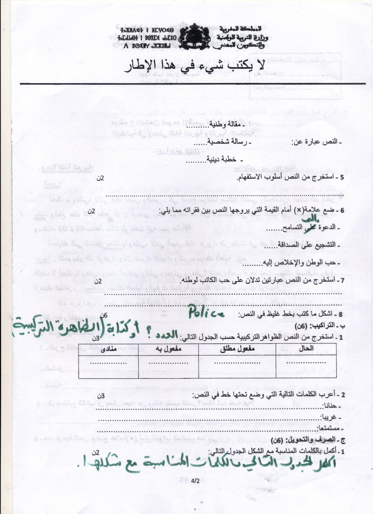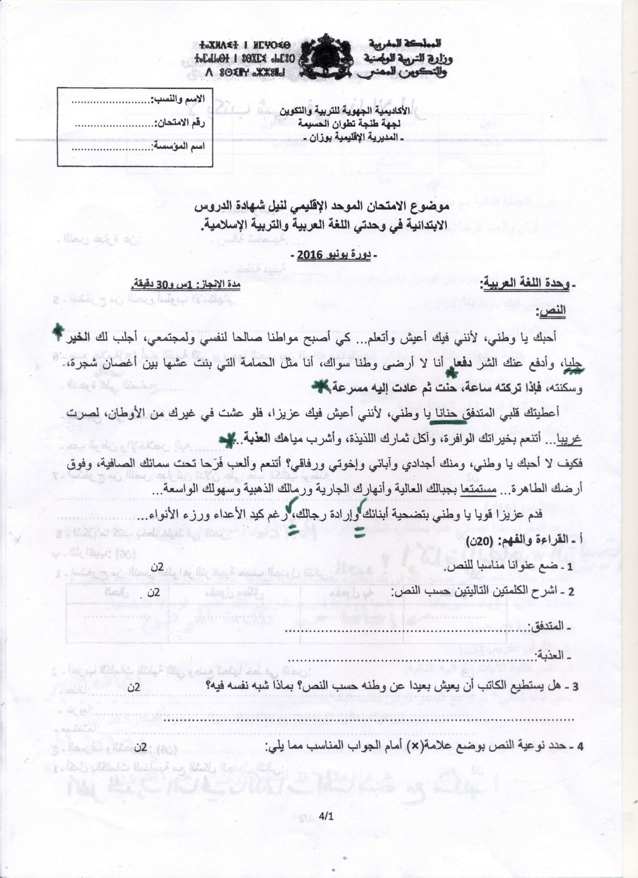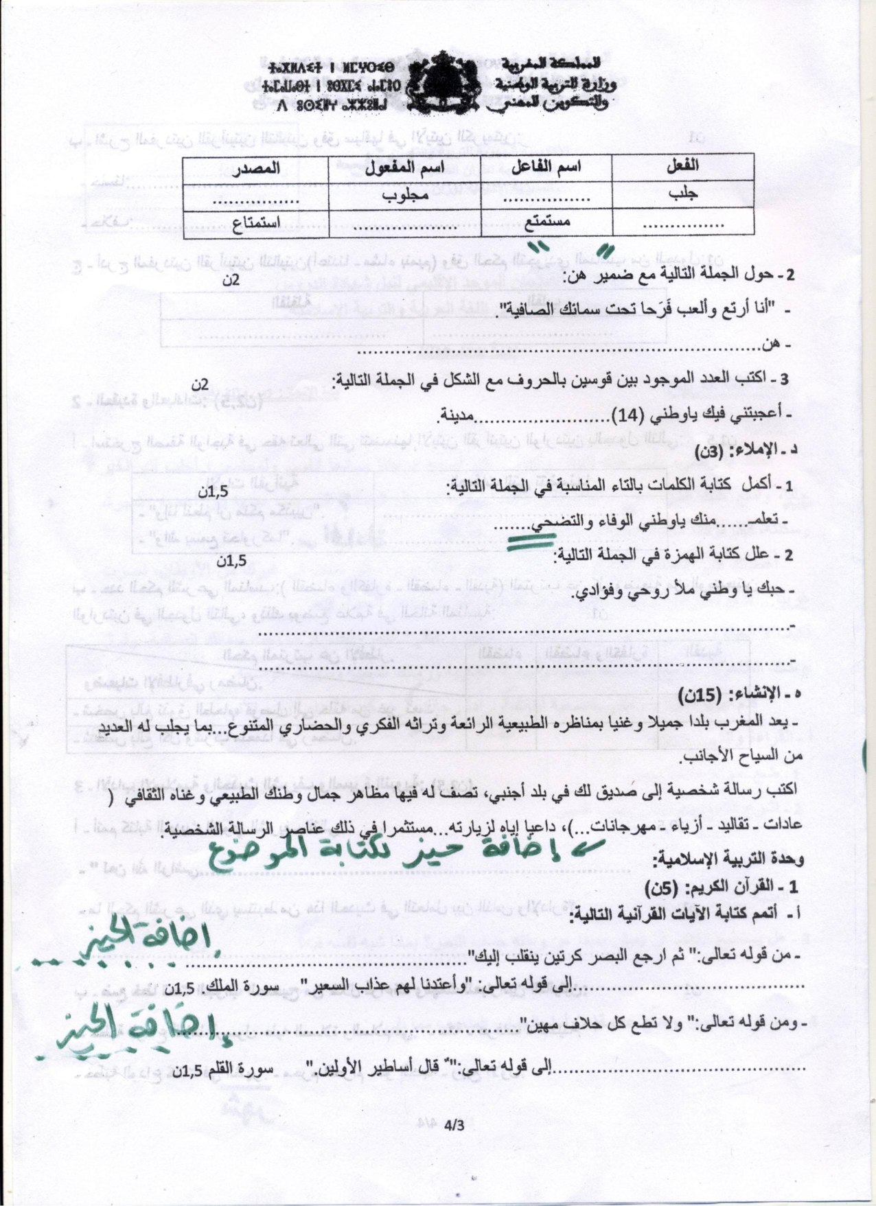 امتحانات إقليمية (اللغة العربية والتربية الإسلامية)