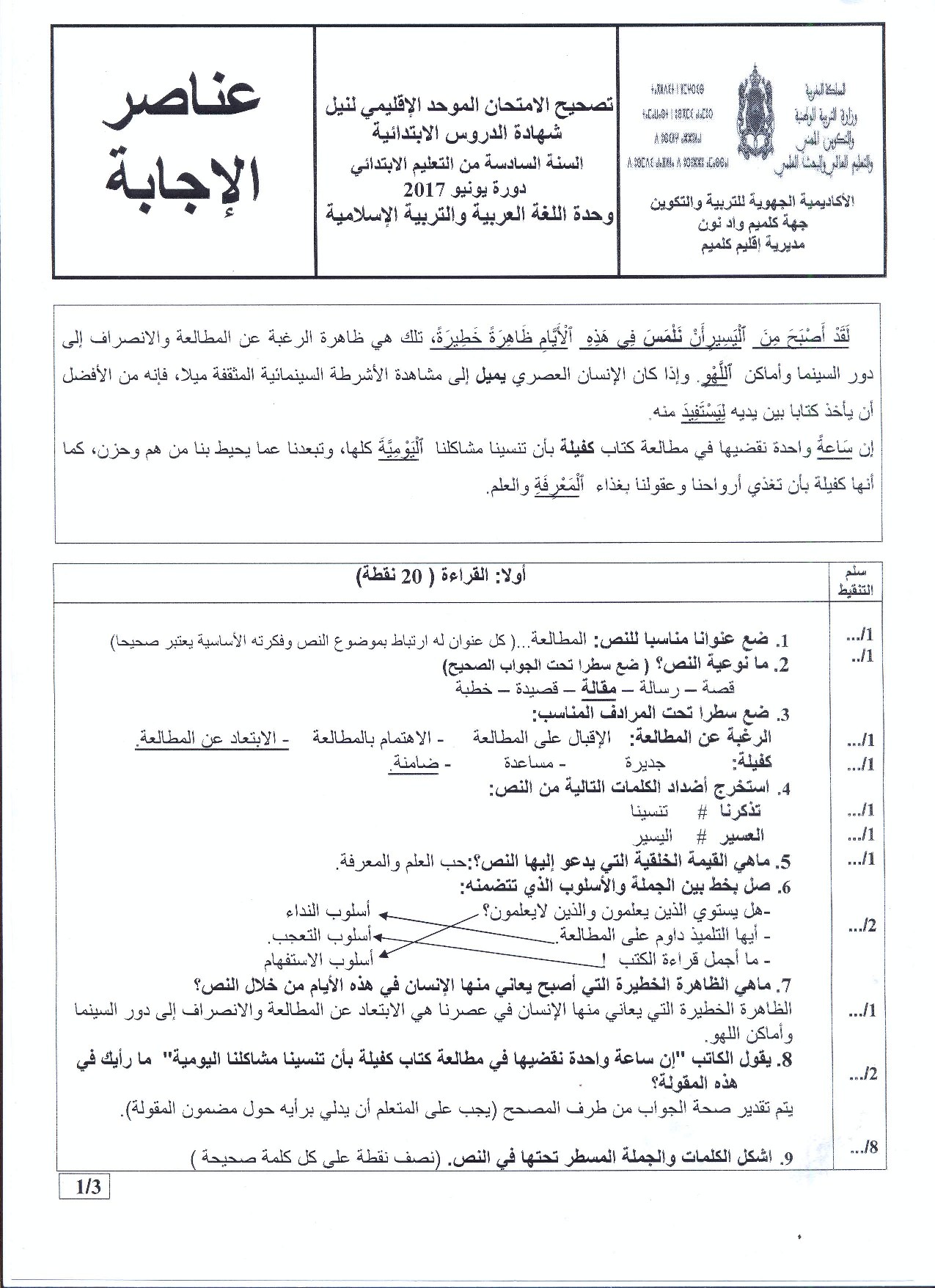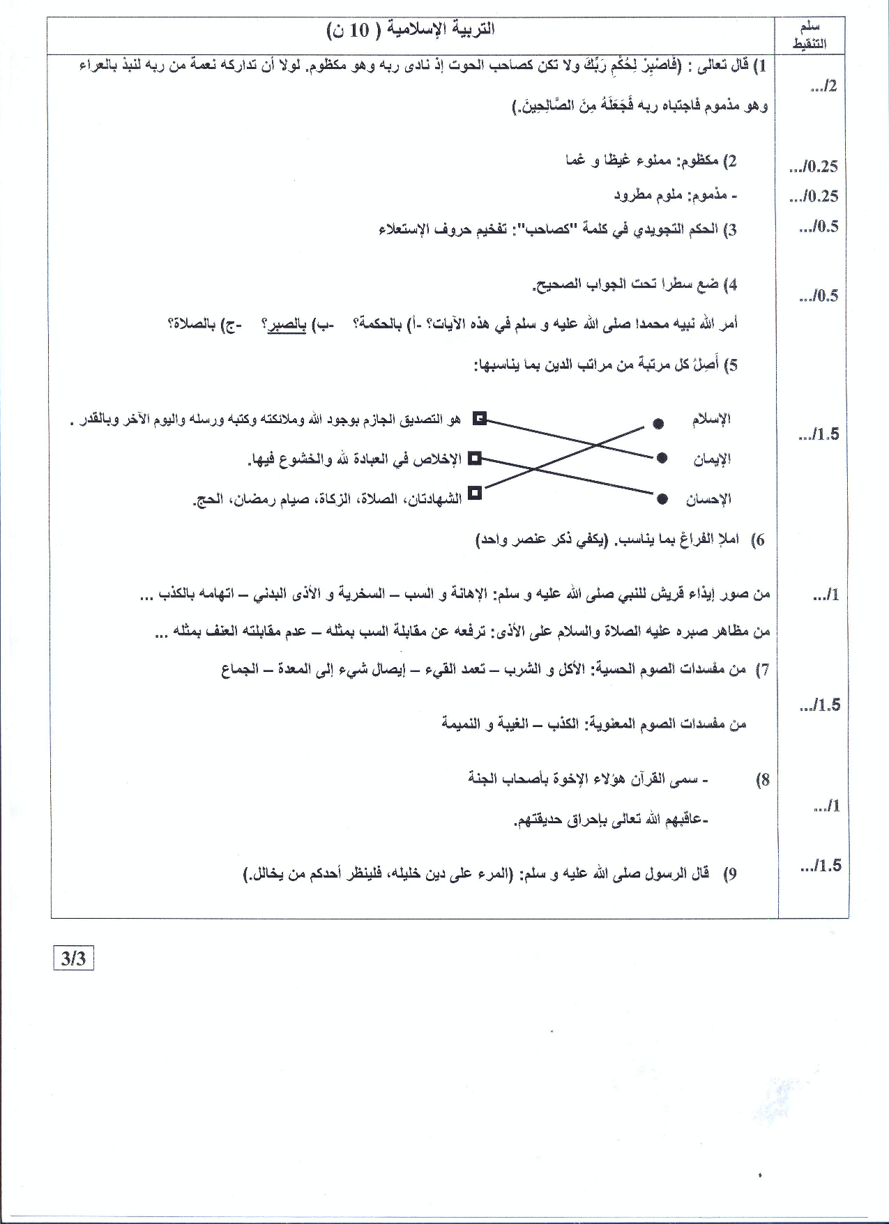 امتحانات إقليمية (اللغة العربية والتربية الإسلامية)
