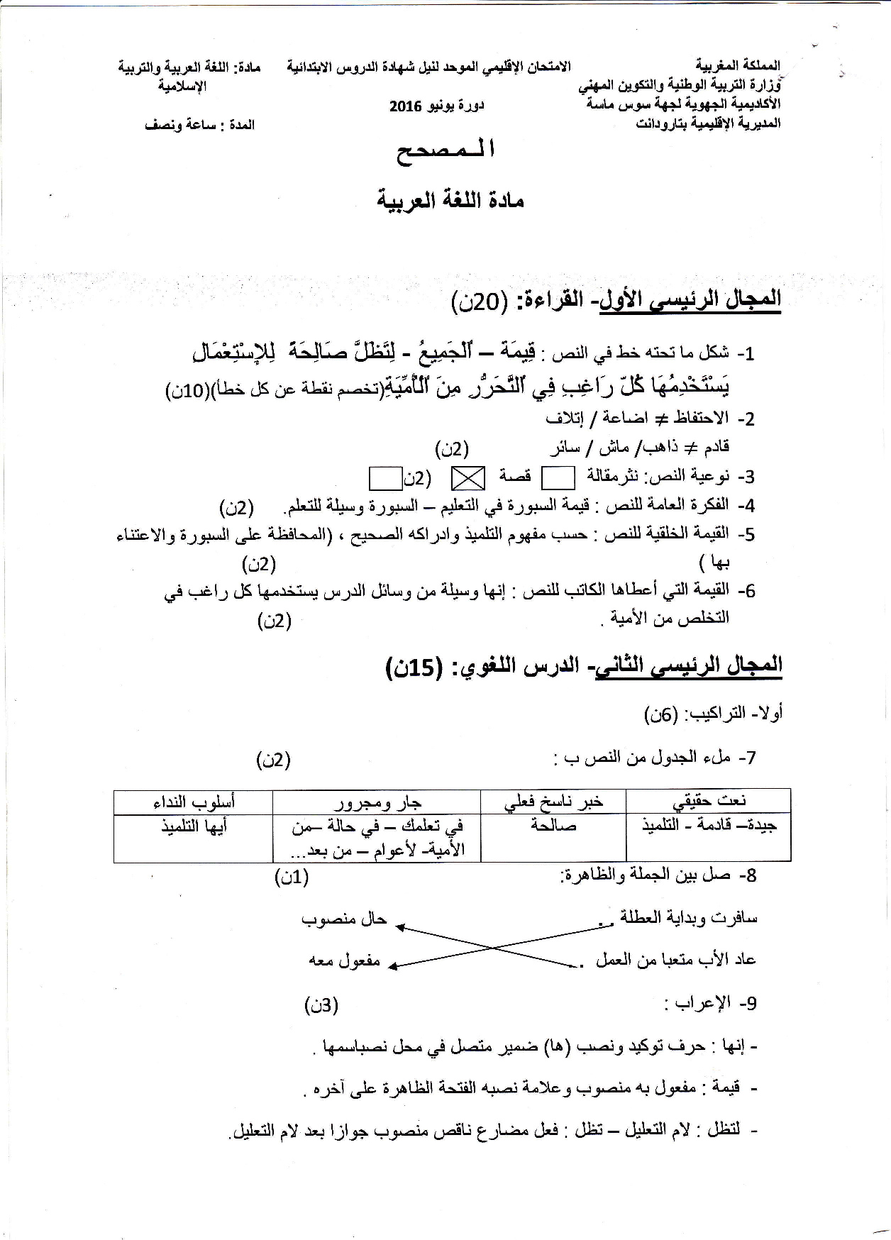 اللغة العربية: السادس ابتدائي