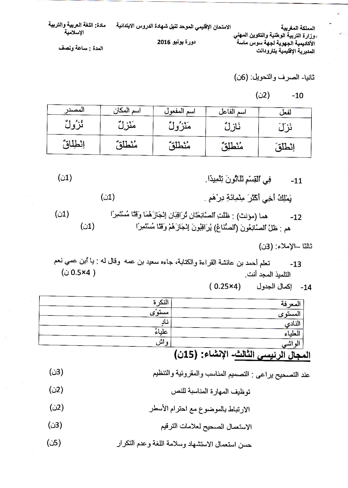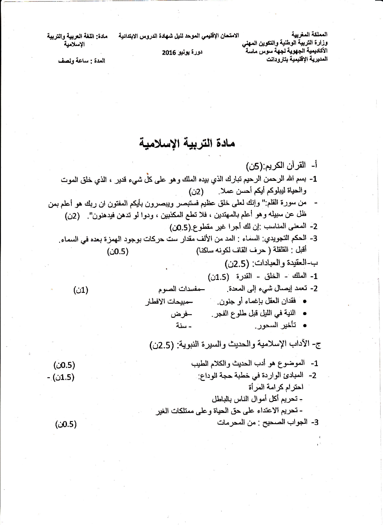 امتحانات إقليمية (اللغة العربية والتربية الإسلامية)