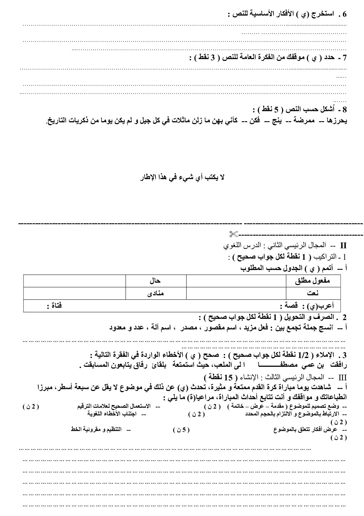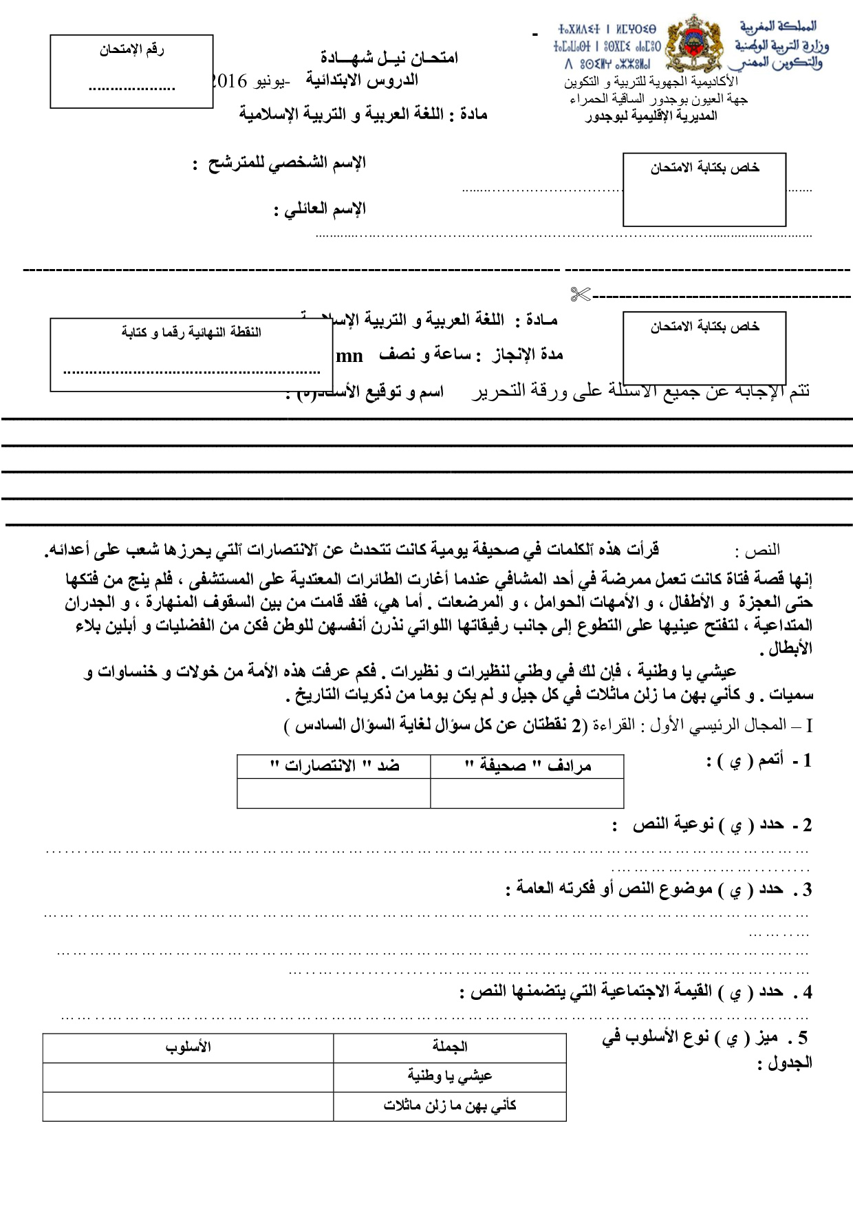 امتحانات إقليمية (اللغة العربية والتربية الإسلامية)