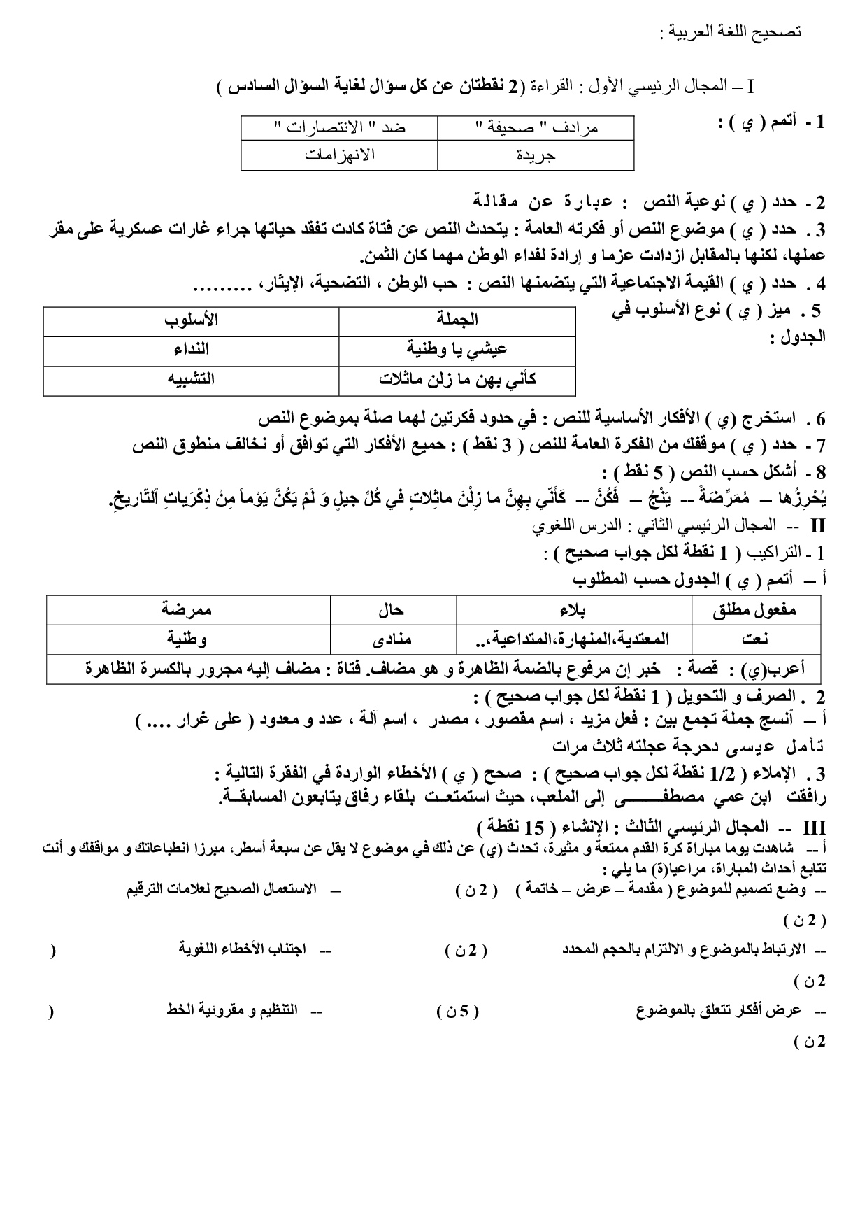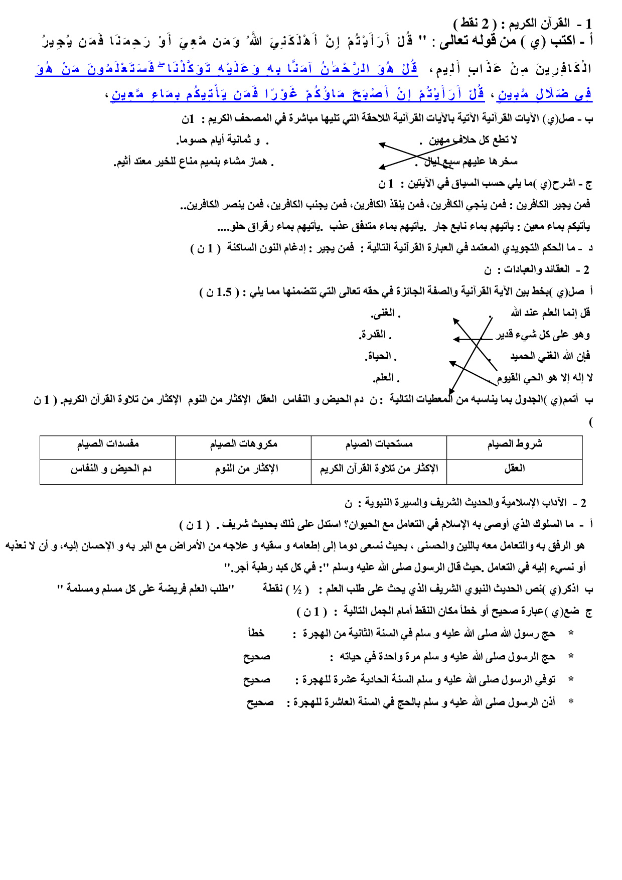 امتحانات إقليمية (اللغة العربية والتربية الإسلامية)