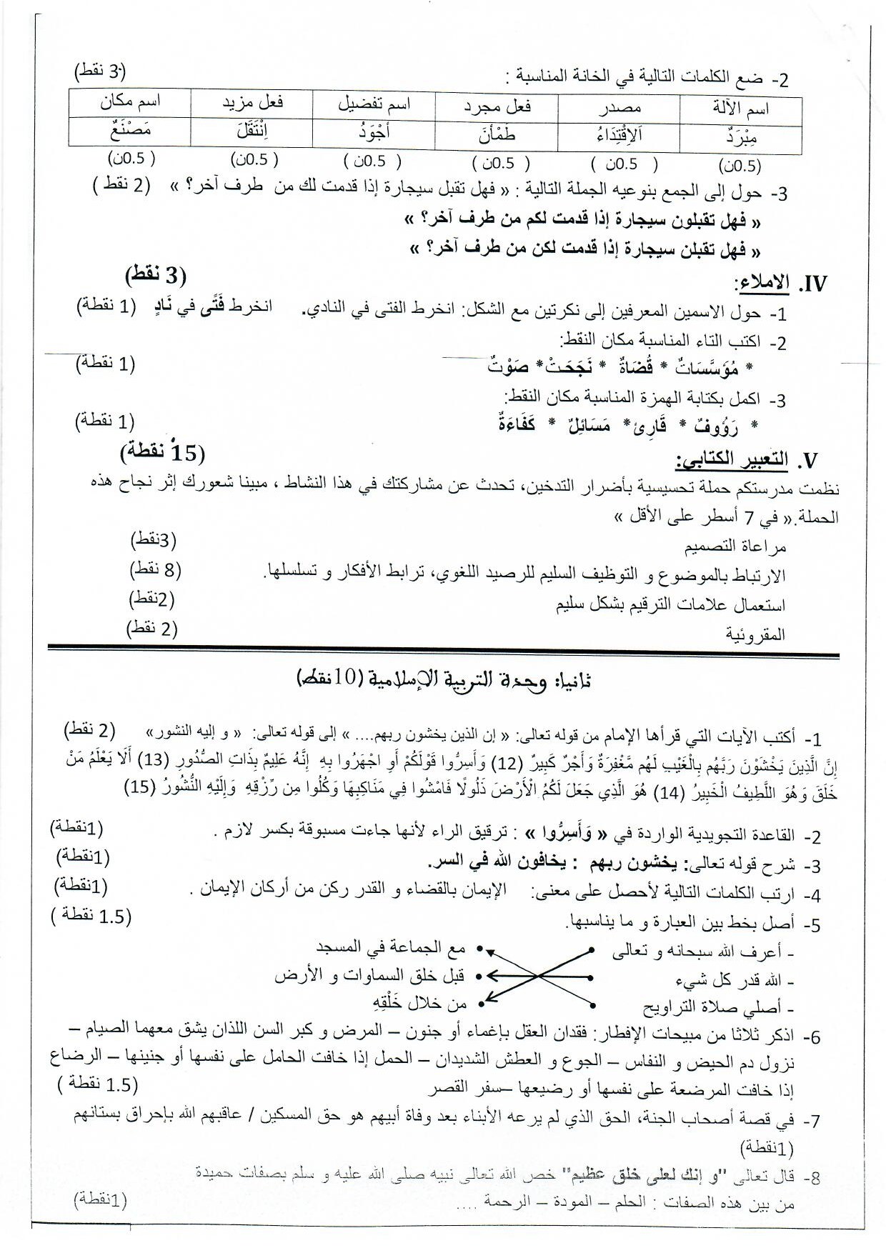 امتحانات إقليمية (اللغة العربية والتربية الإسلامية)