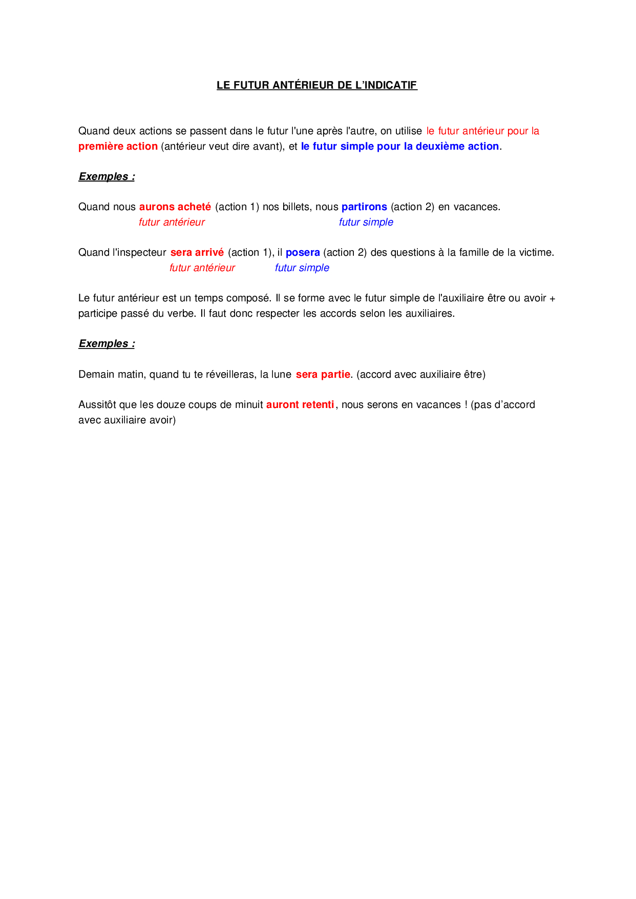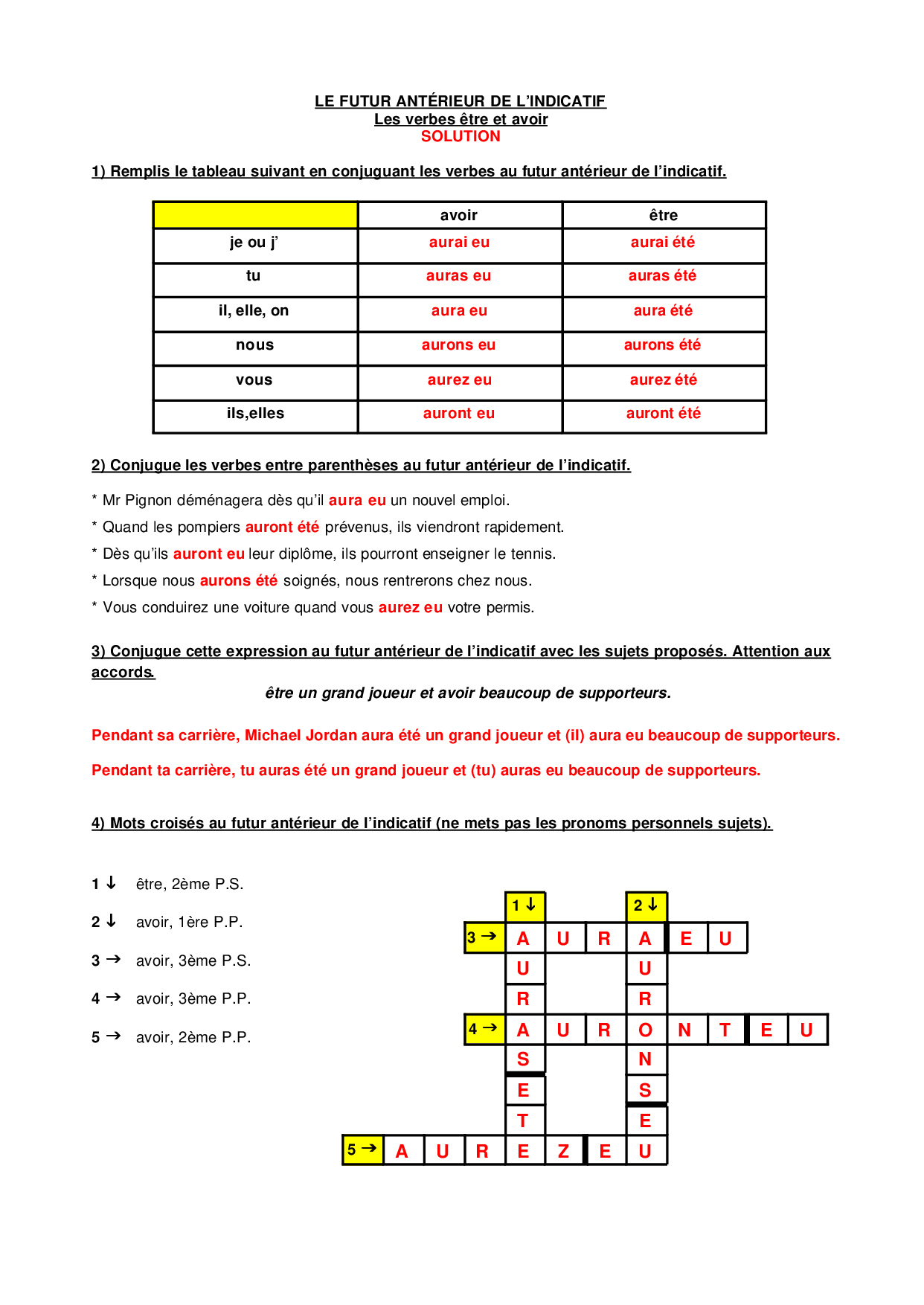 Le futur antérieur de l’indicatif - les verbes être et avoir - exercices