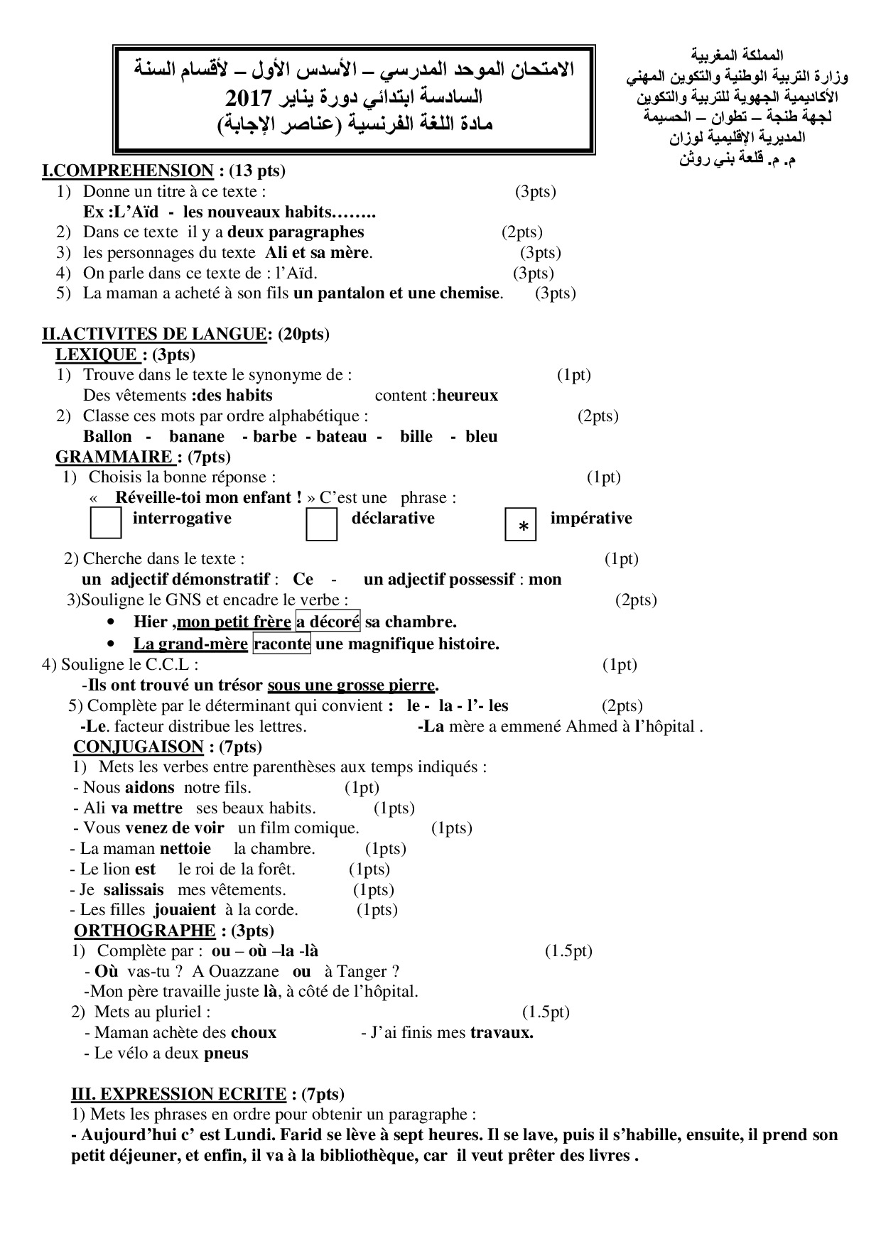 Français: 6ème Année Primaire