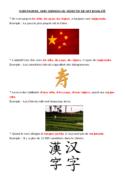 Le nom propre, nom commun ou adjectif de nationalité