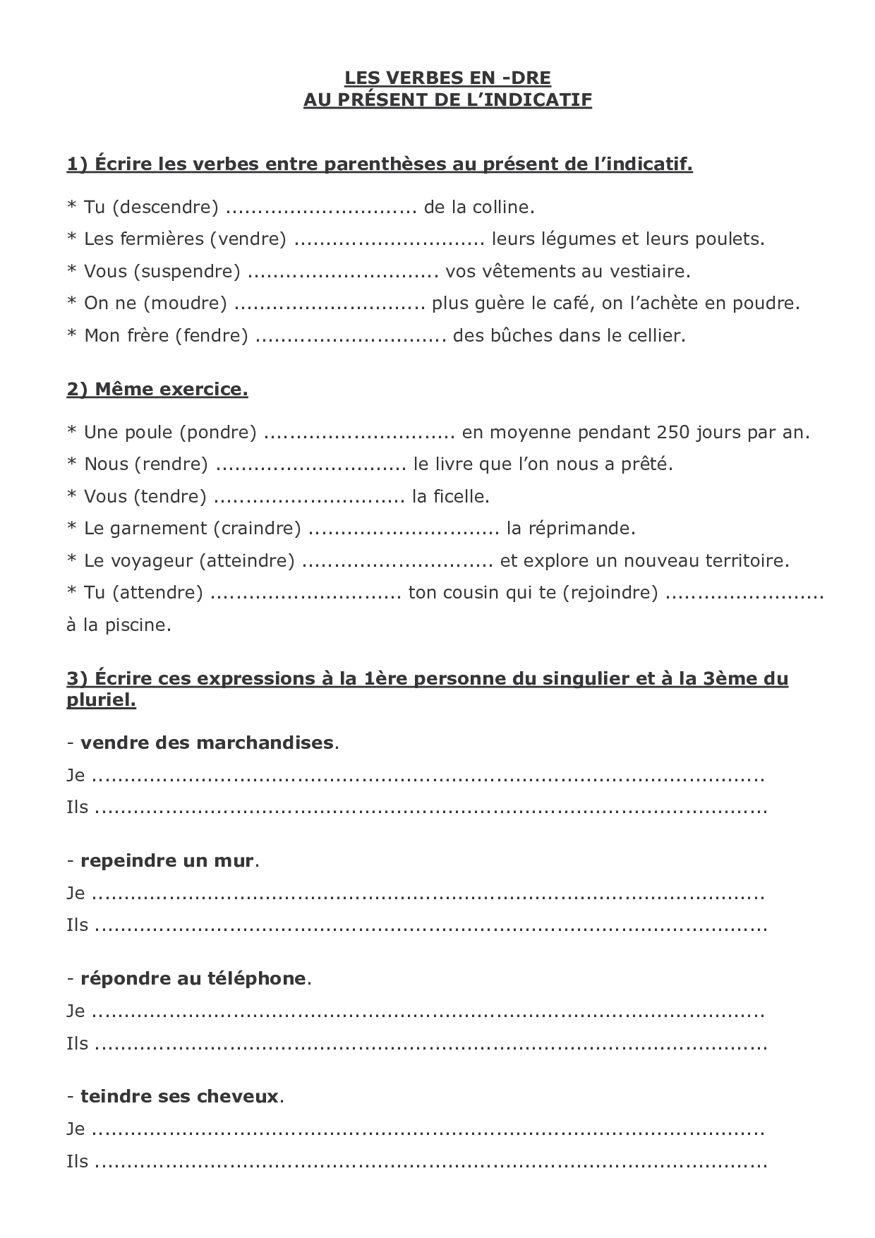 Les verbes en [dre] au présent de l'indicatif - exercices 2