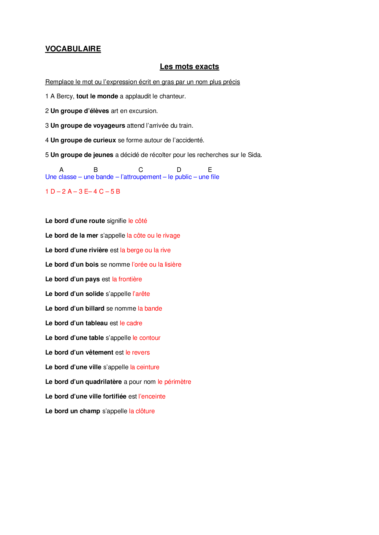 Exercices de Vocabulaire