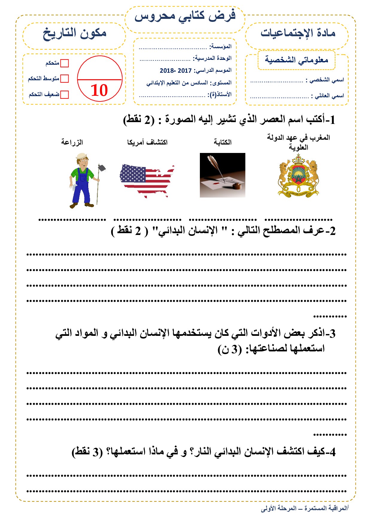 الفرض 2 نموذج 1 - الإجتماعيات سادس إبتدائي الدورة الأولى