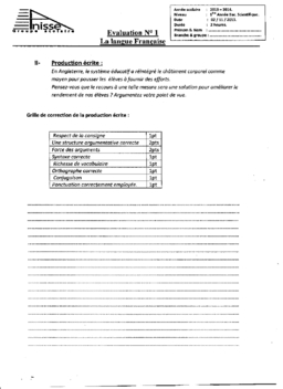 Devoir 1 Modèle 7 - Français 1er Bac Semestre 1