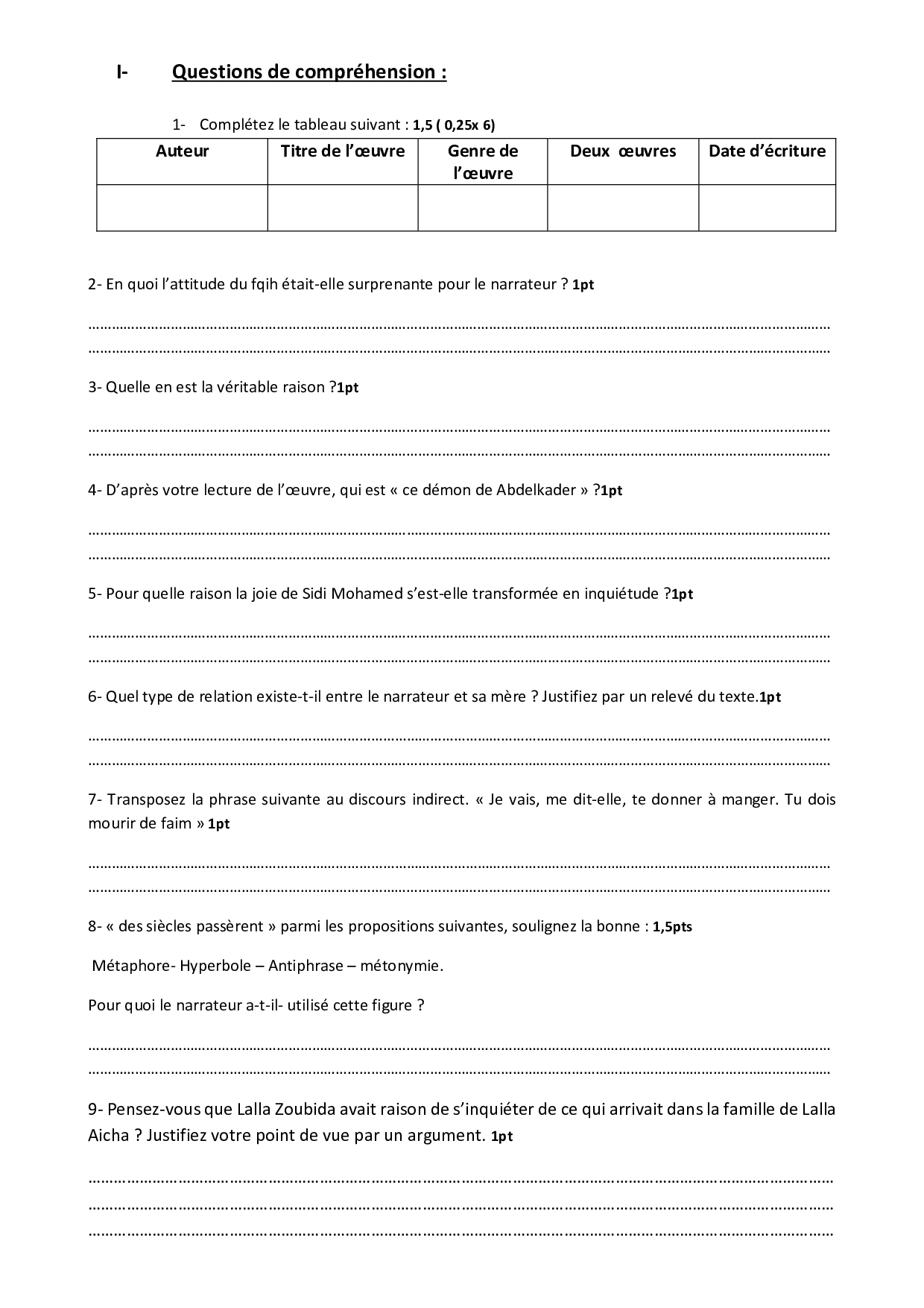 Devoir 2 Modèle 1 - Français 1er Bac Semestre 1