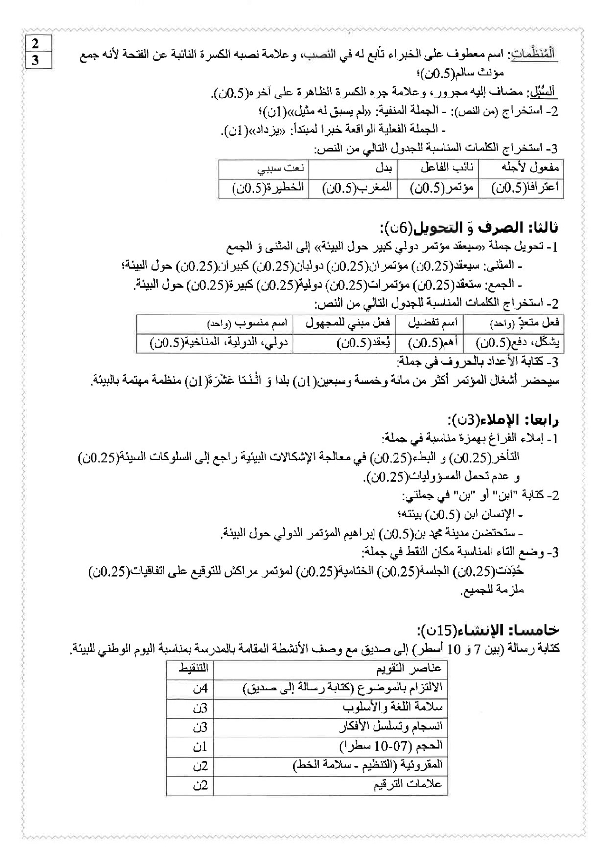 امتحانات إقليمية (اللغة العربية والتربية الإسلامية)
