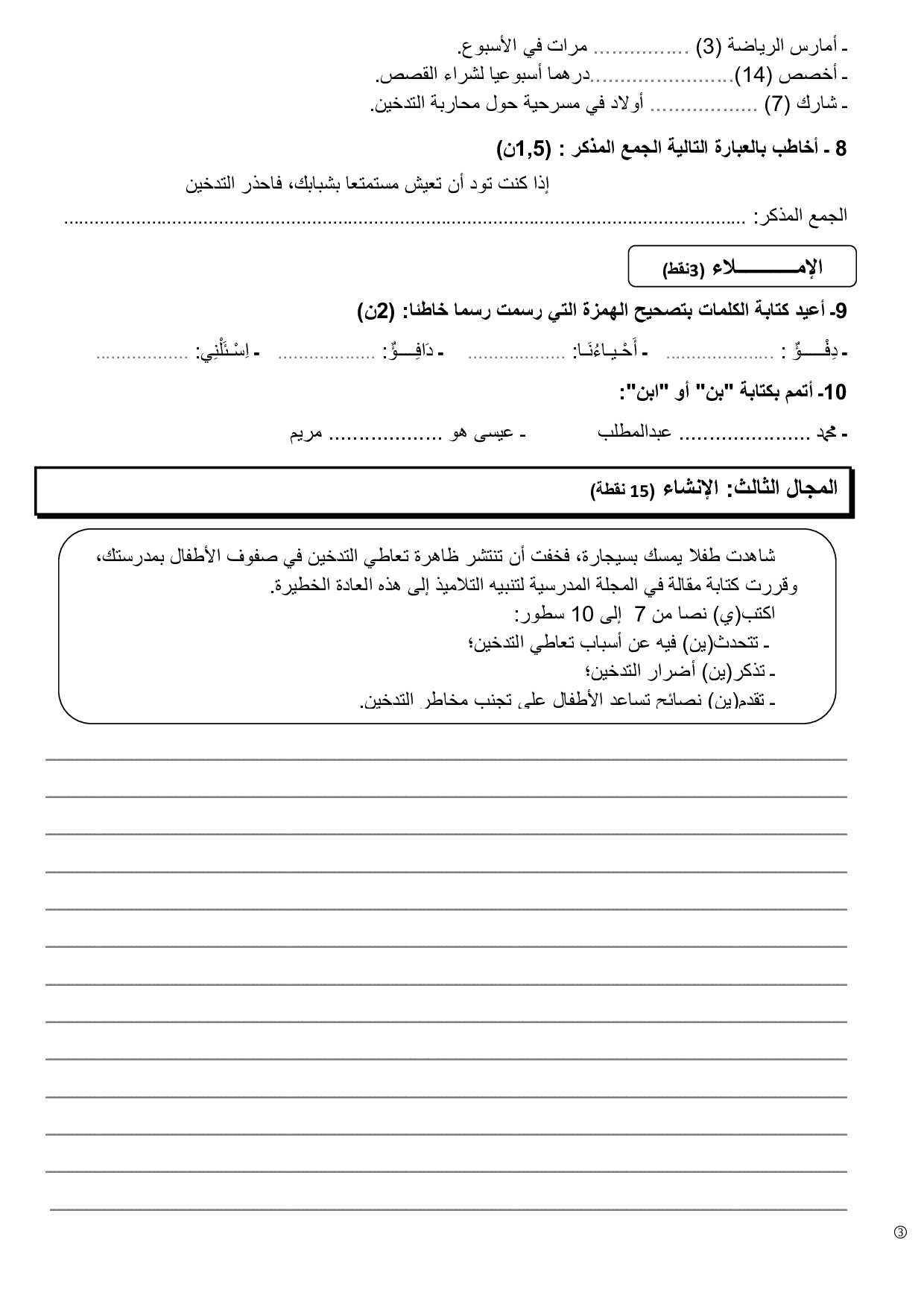 امتحانات إقليمية (اللغة العربية والتربية الإسلامية)