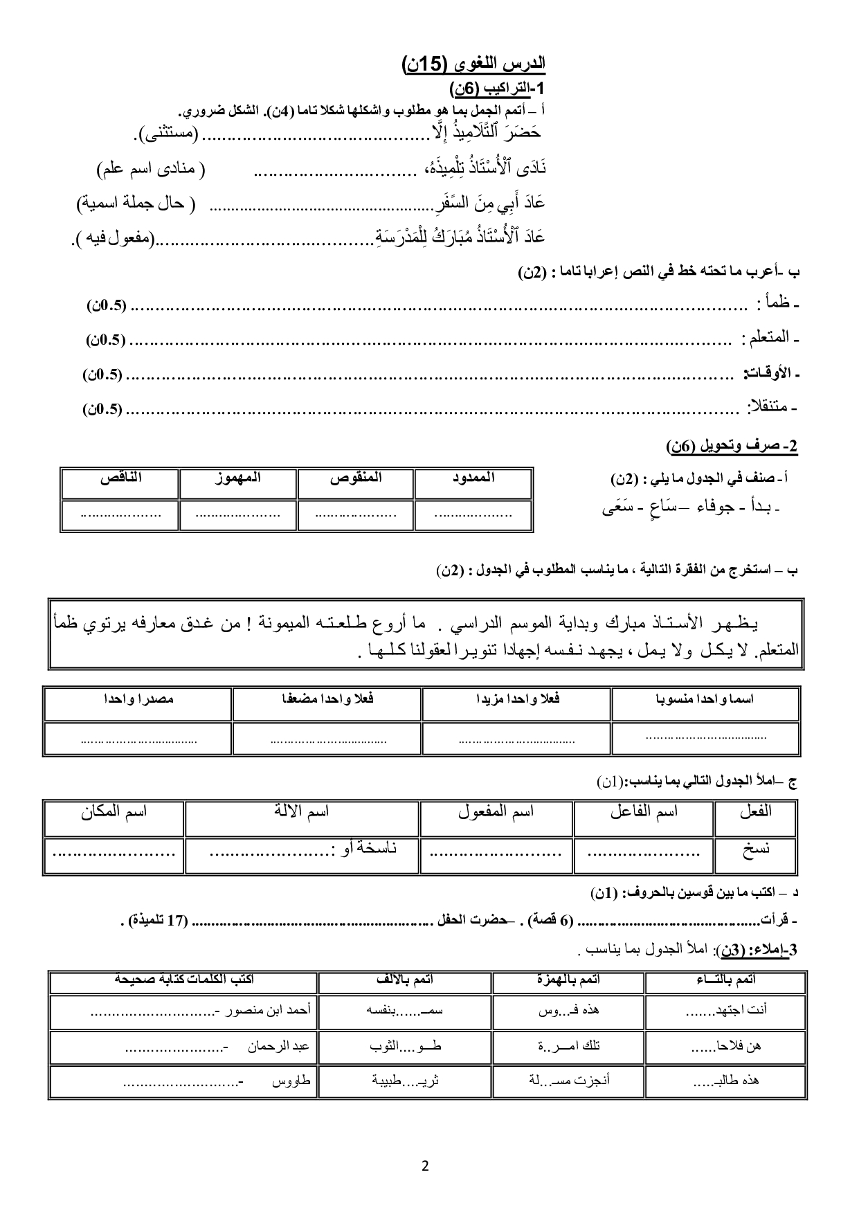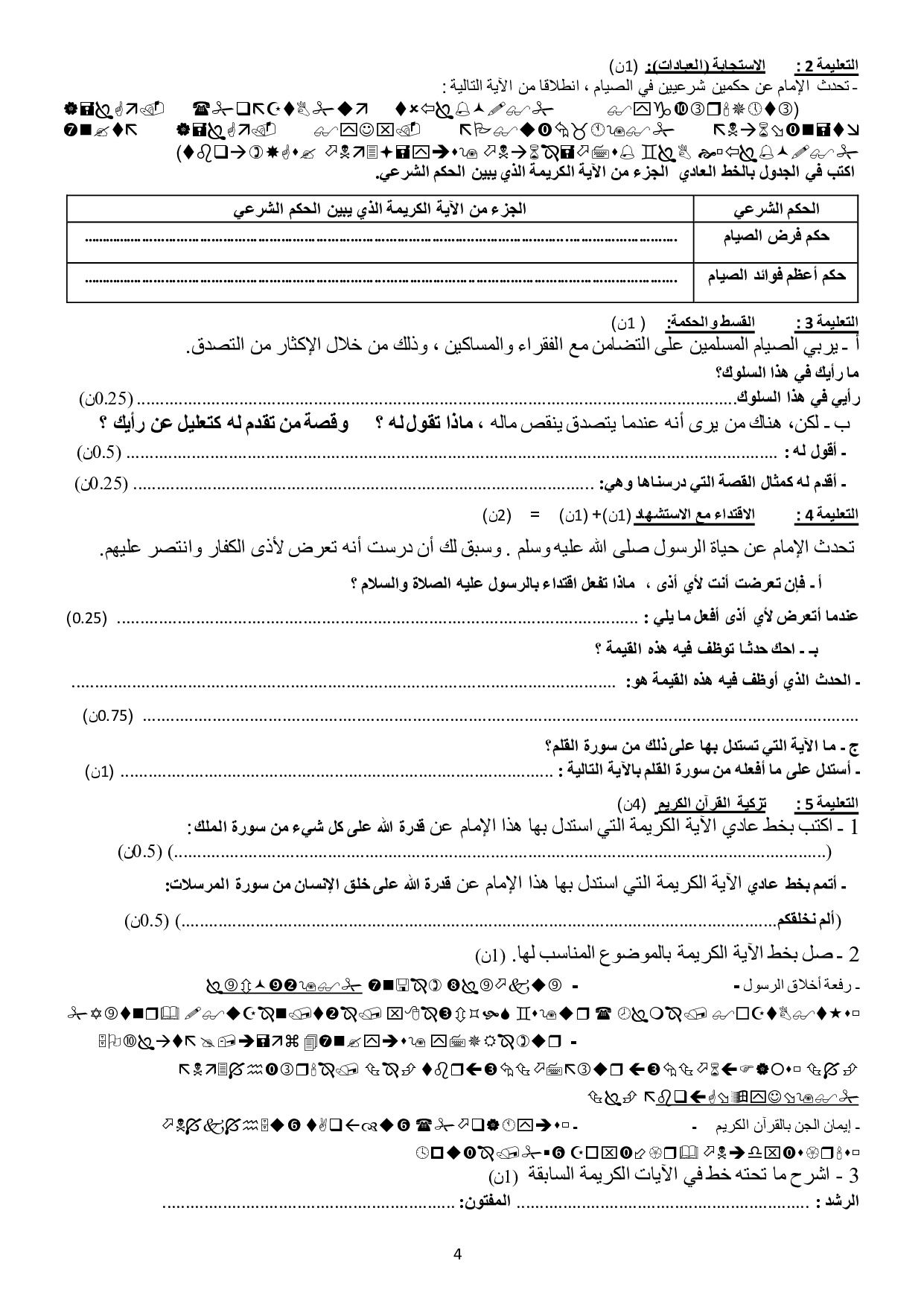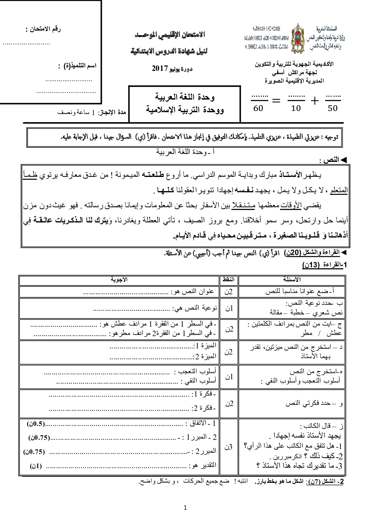 امتحانات إقليمية (اللغة العربية والتربية الإسلامية)