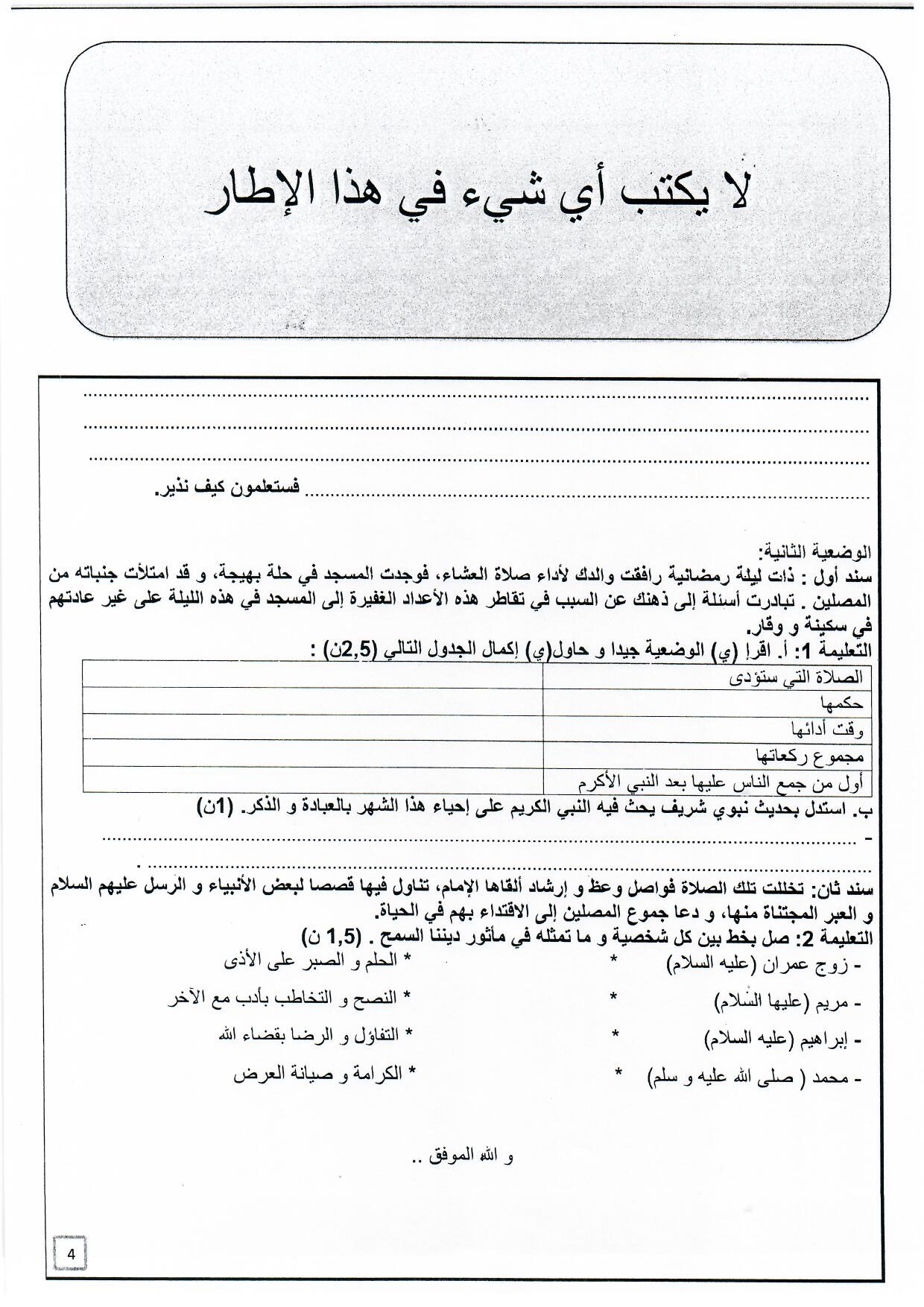 امتحانات إقليمية (اللغة العربية والتربية الإسلامية)