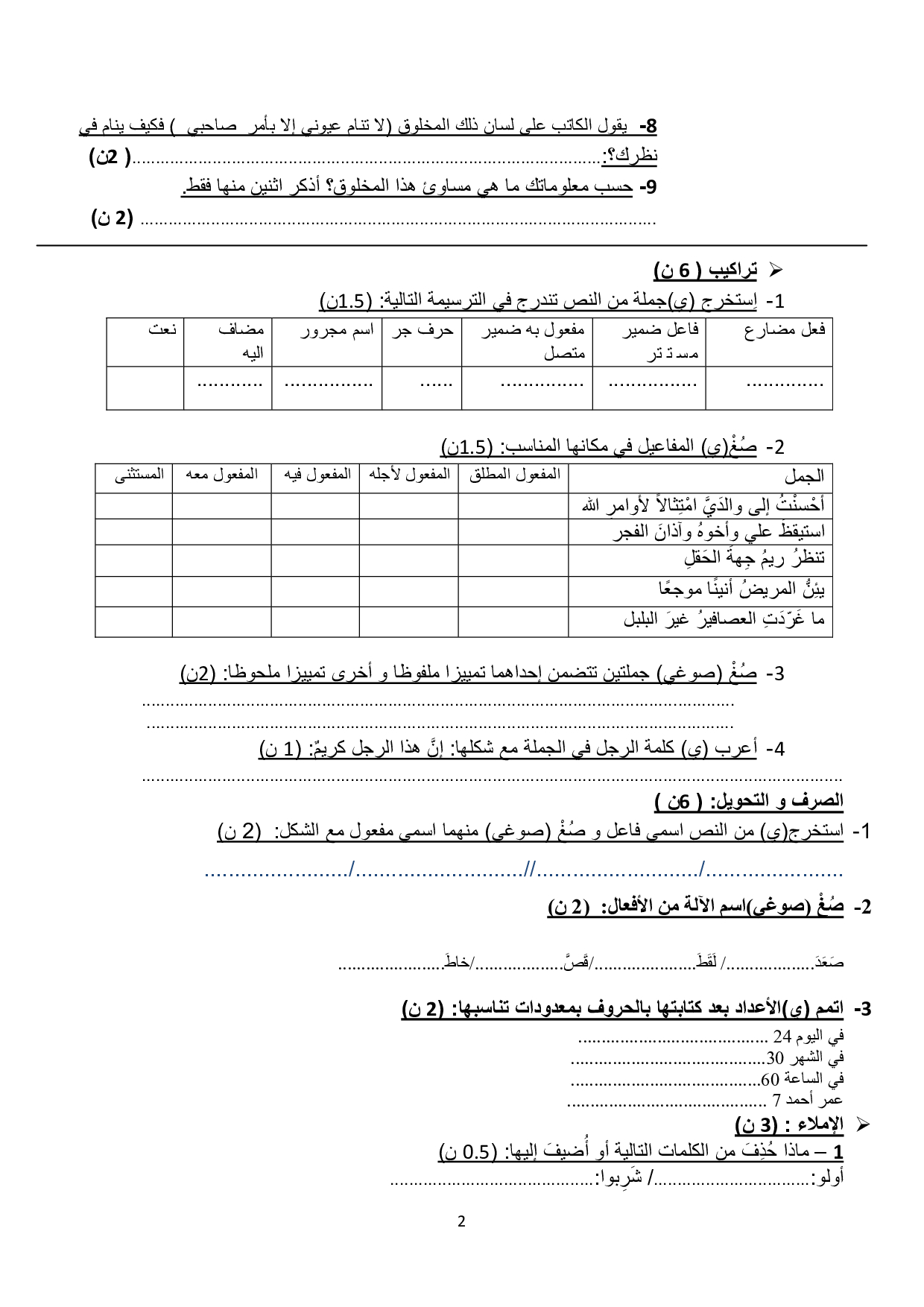 امتحانات إقليمية (اللغة العربية والتربية الإسلامية)