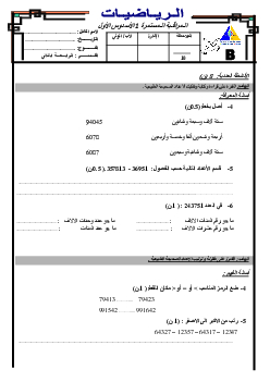 الفرض 1 نموذج 6 - الرياضيات رابع إبتدائي الدورة الأولى