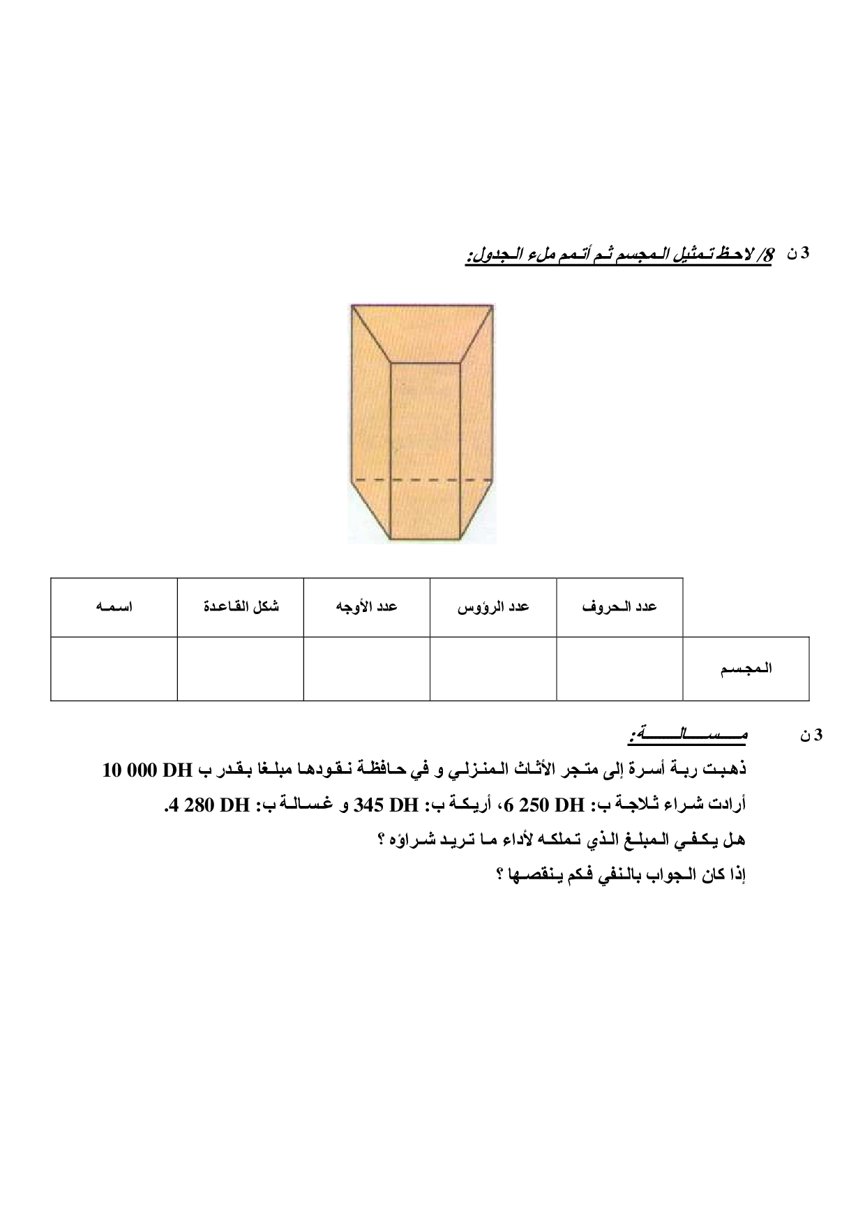 الفرض 1 نموذج 7 - الرياضيات رابع إبتدائي الدورة الأولى