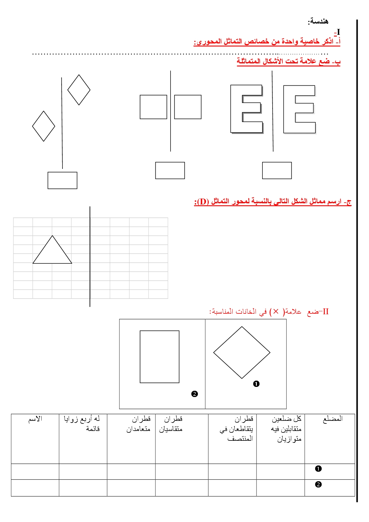 الفرض 1 نموذج 4 - الرياضيات رابع إبتدائي الدورة الثانية