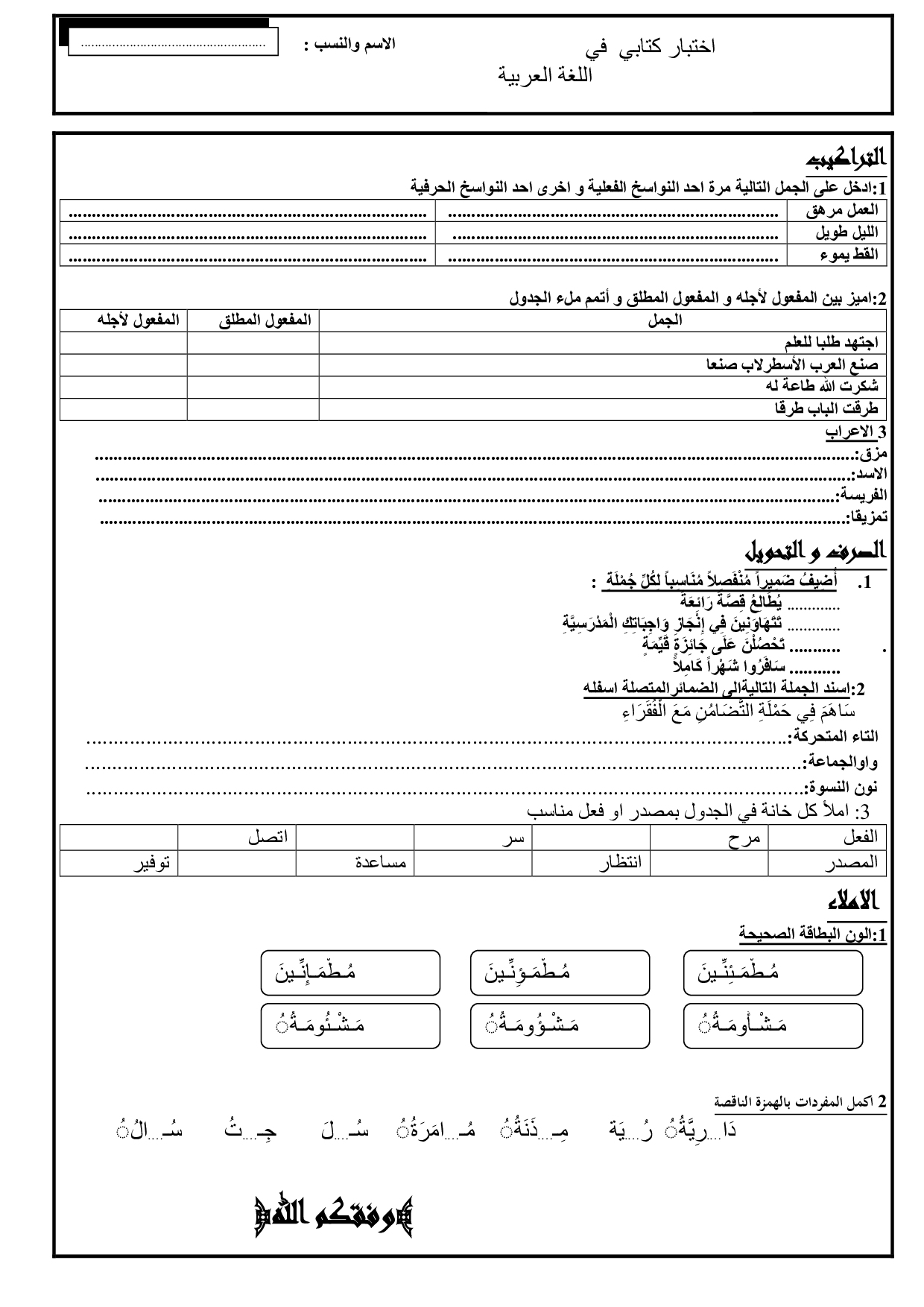 الفرض 1 نموذج 5 - اللغة العربية رابع إبتدائي الدورة الأولى