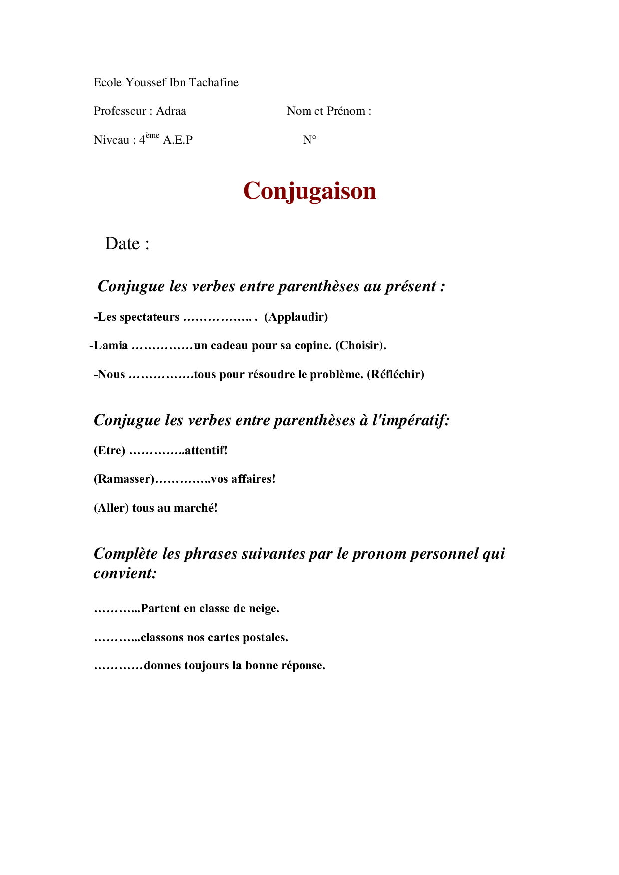 Devoir 1 Modèle 4 - Français 4ème Primaire Semestre 1