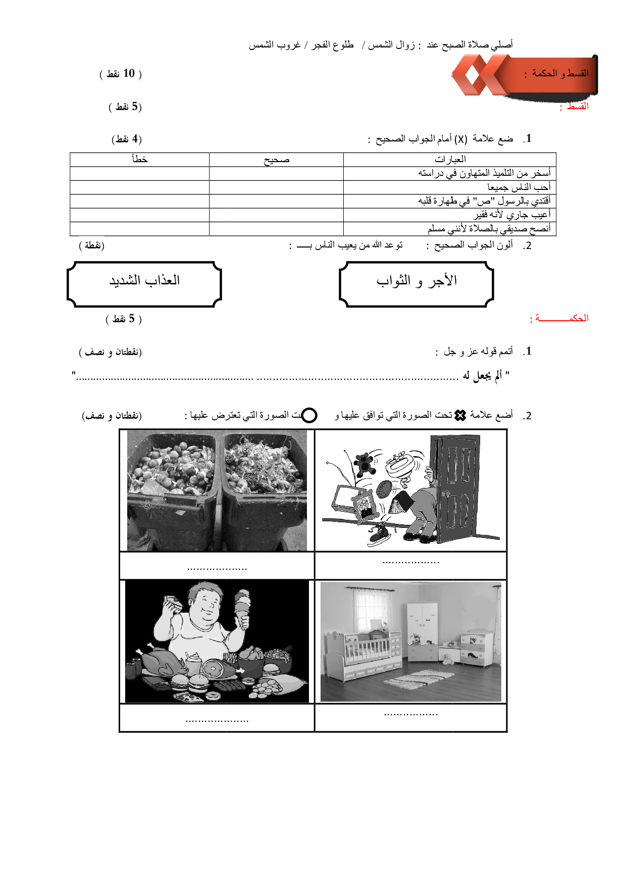 الفرض 2 نموذج 1 - التربية الإسلامية ثاني إبتدائي الدورة الأولى