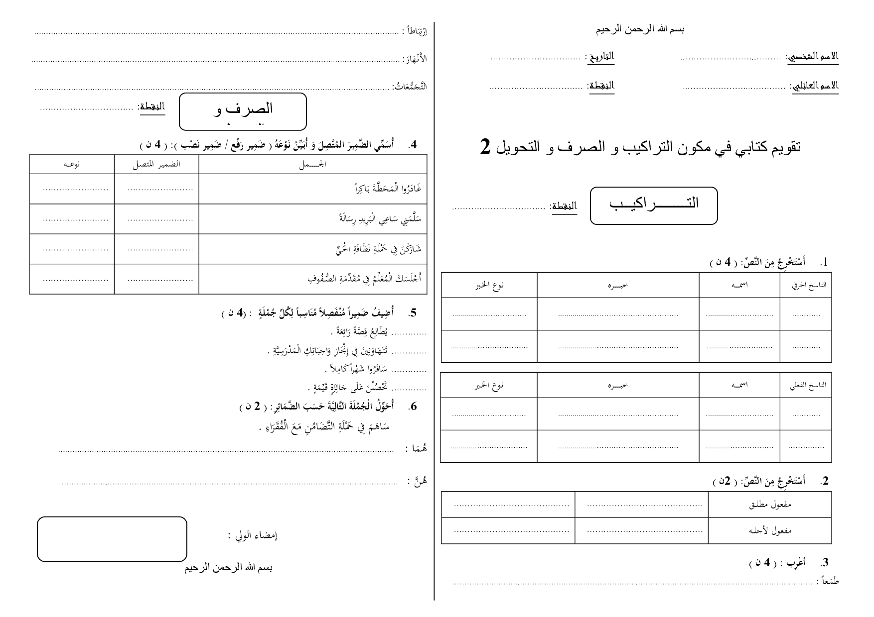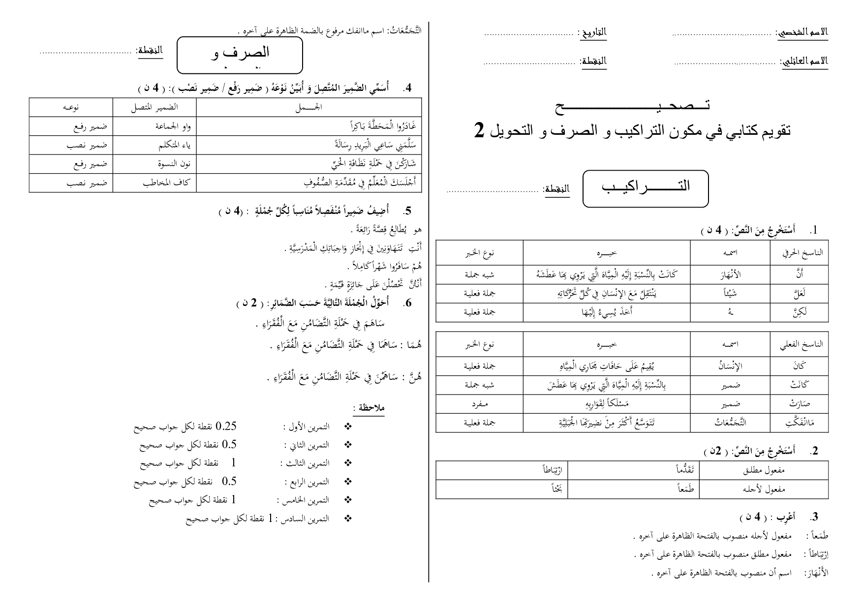 تقويم كتابي في مكون التراكيب والصرف والتحويل 2
