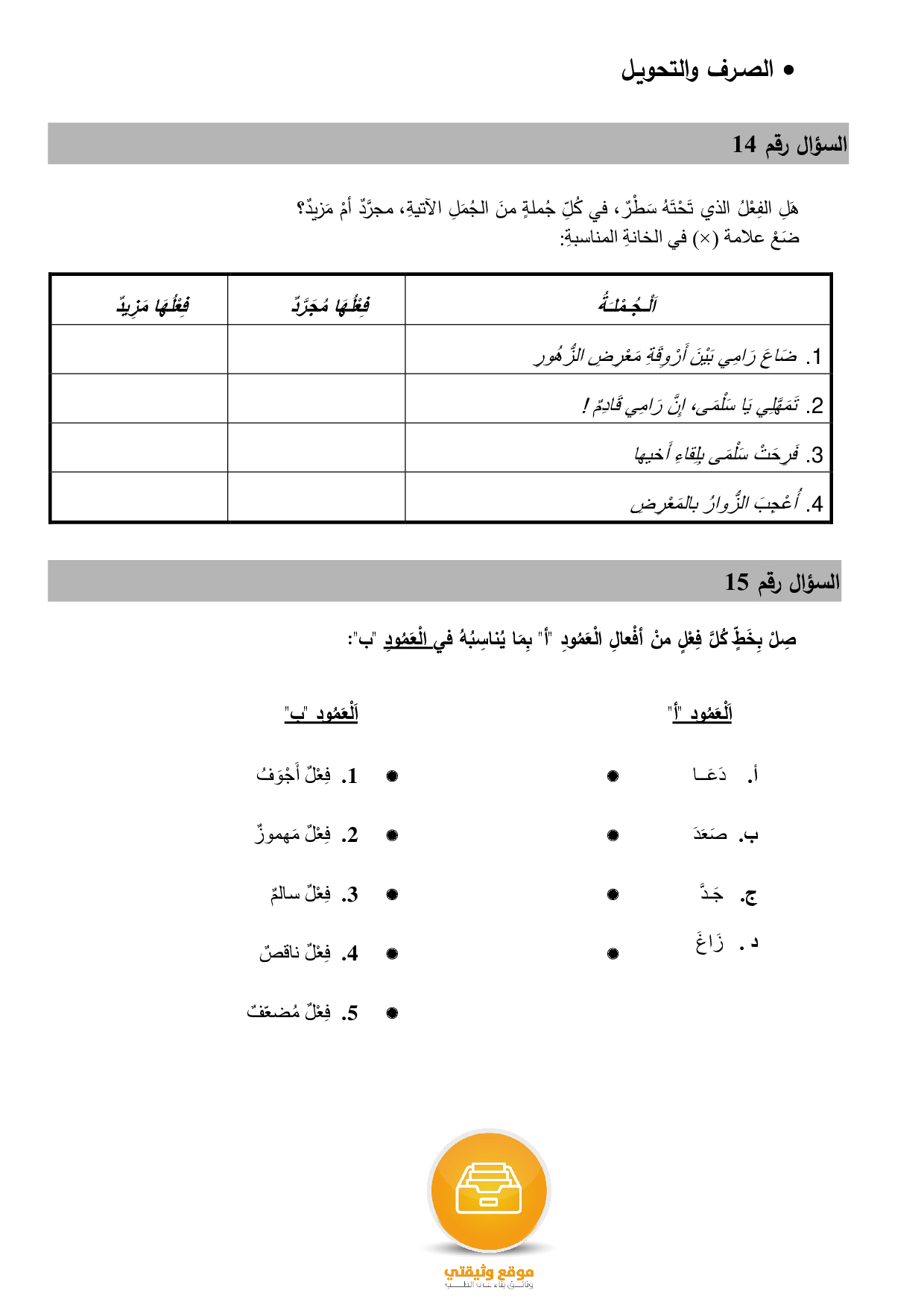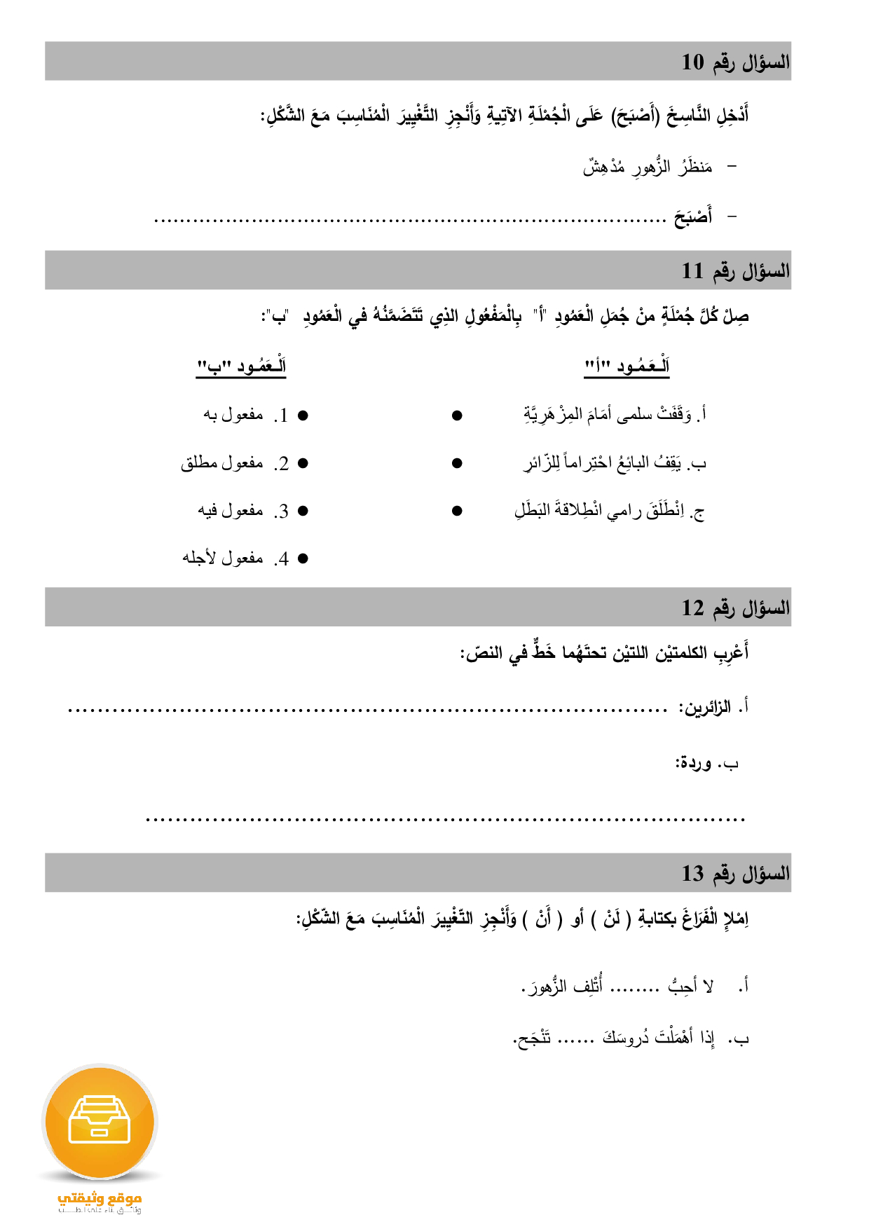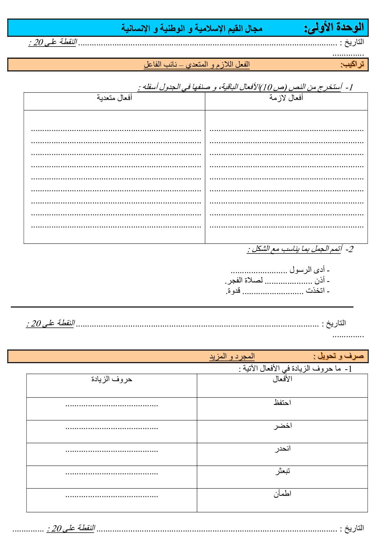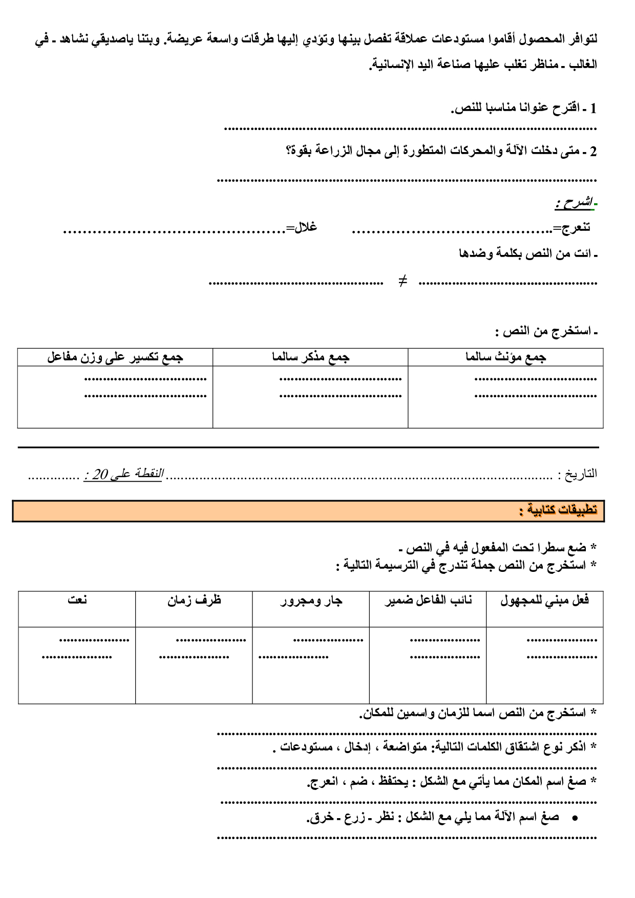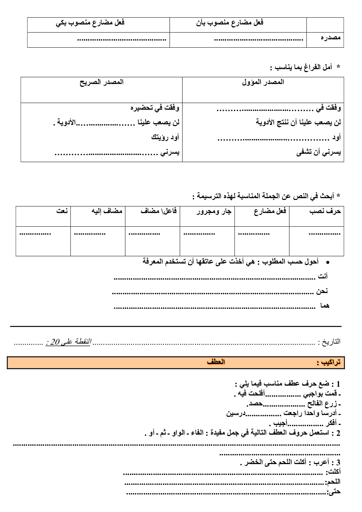 دفتر التمارين للغة العربية المستوى الخامس ابتدائي