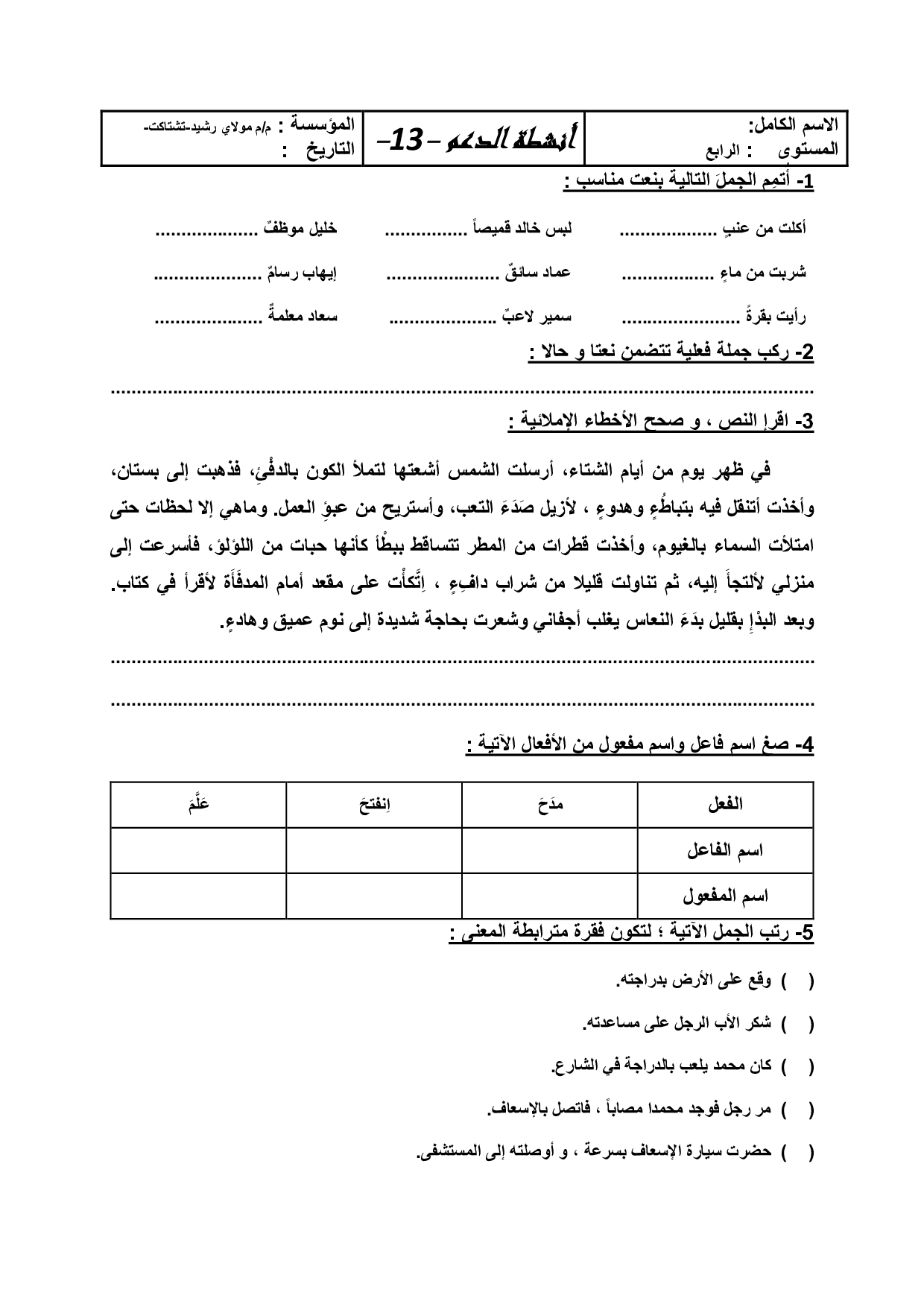 اللغة العربية: الرابع ابتدائي