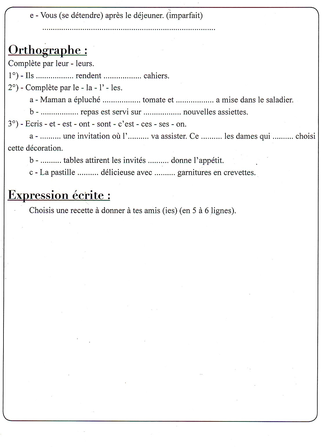 Evaluation 15 (Français 5ème Primaire) - Sujet