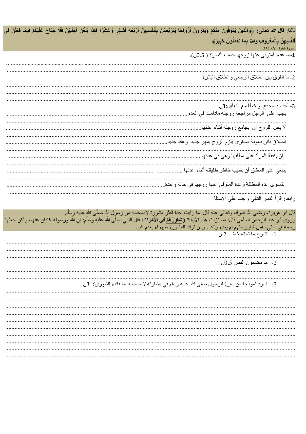 التربية الإسلامية: الأولى باك علوم تجريبية