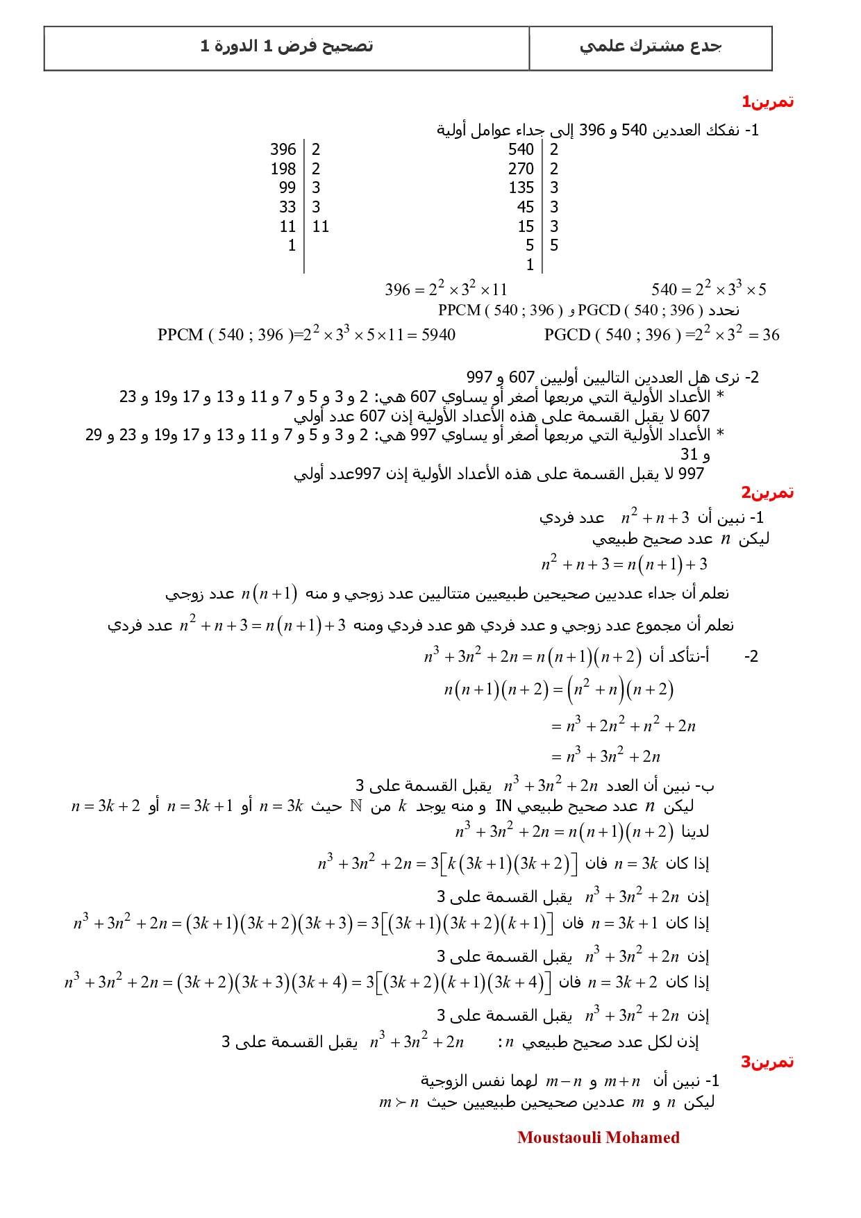 الفرض 1 نموذج 1 - الرياضيات جذع مشترك الدورة الأولى (التصحيح)