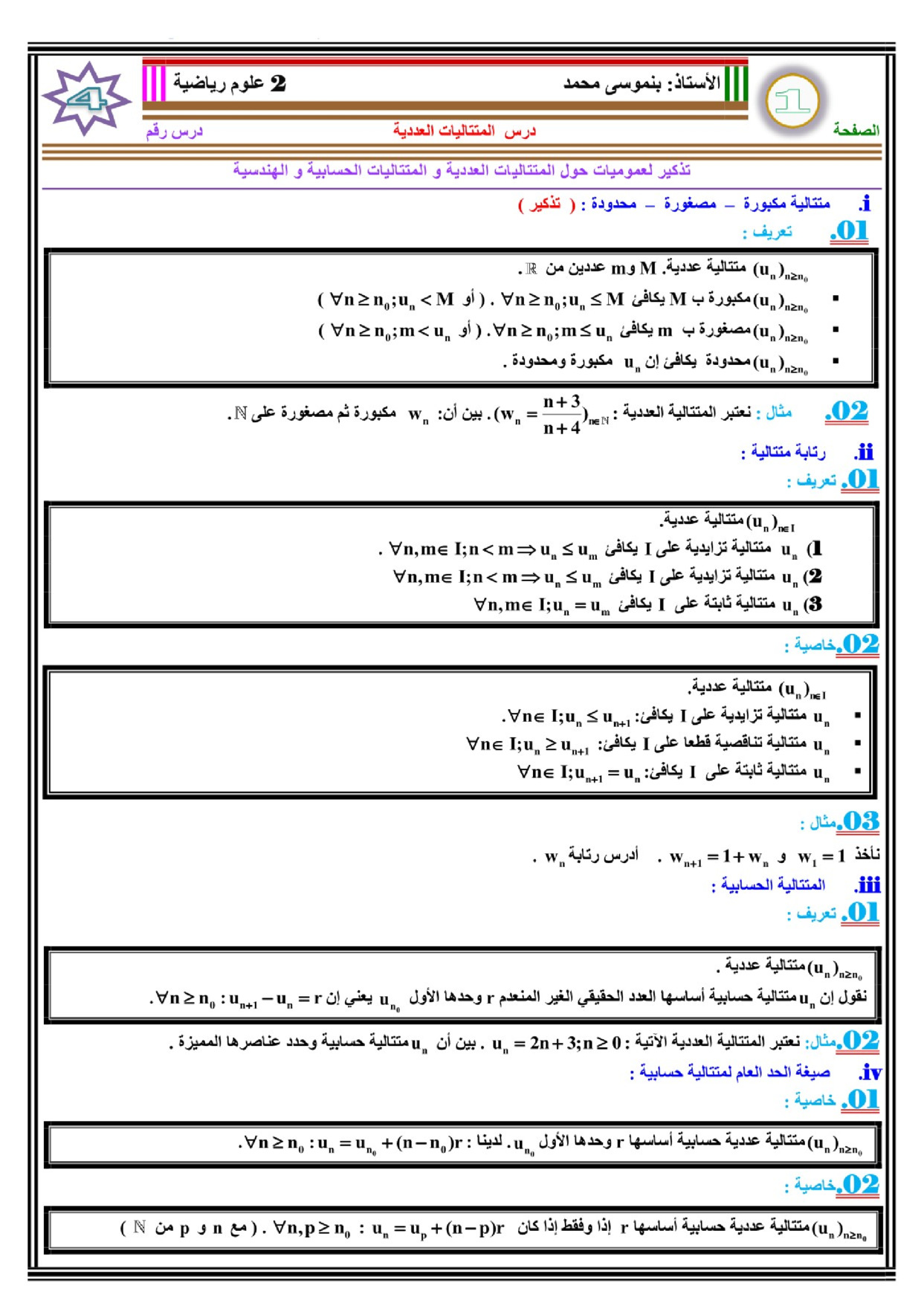 المتتاليات العددية - الدرس 1