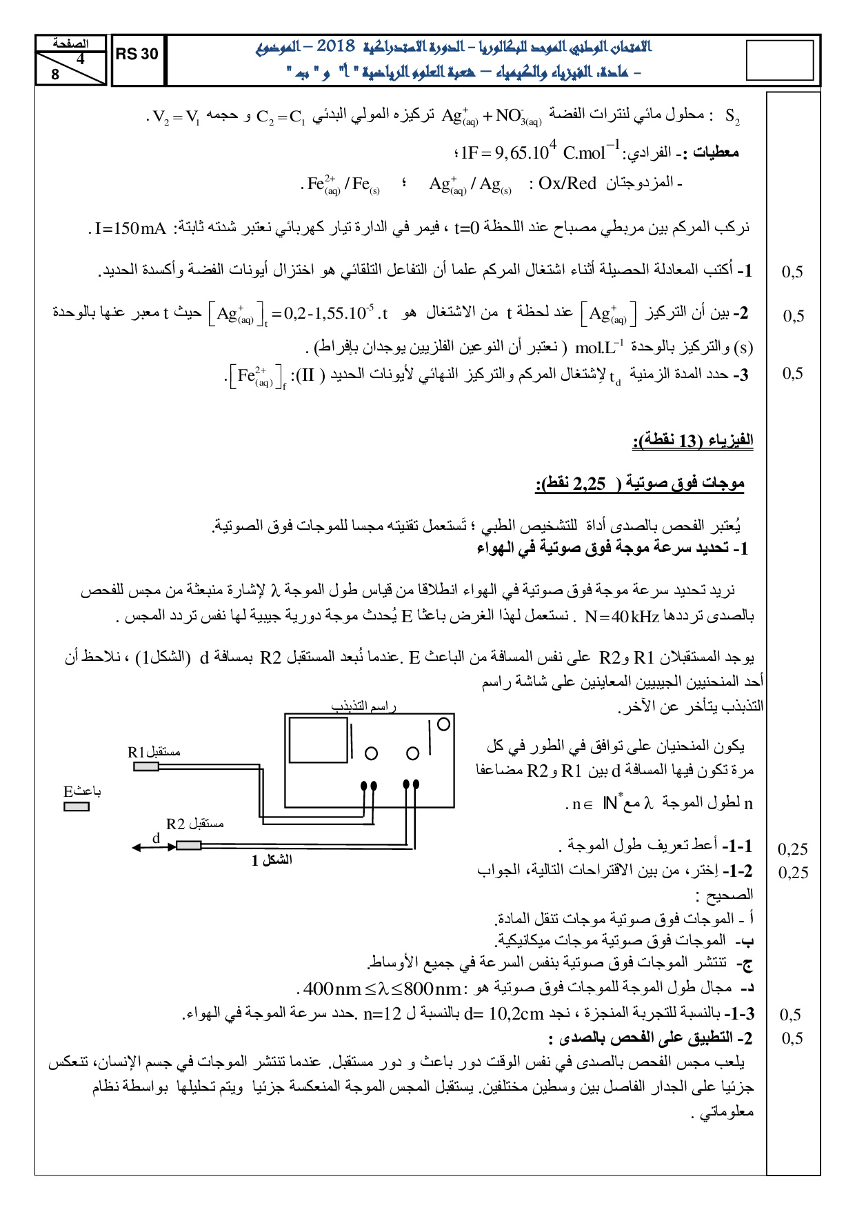 الفيزياء والكيمياء علوم رياضية 2018 الدورة الإستدراكية - الموضوع