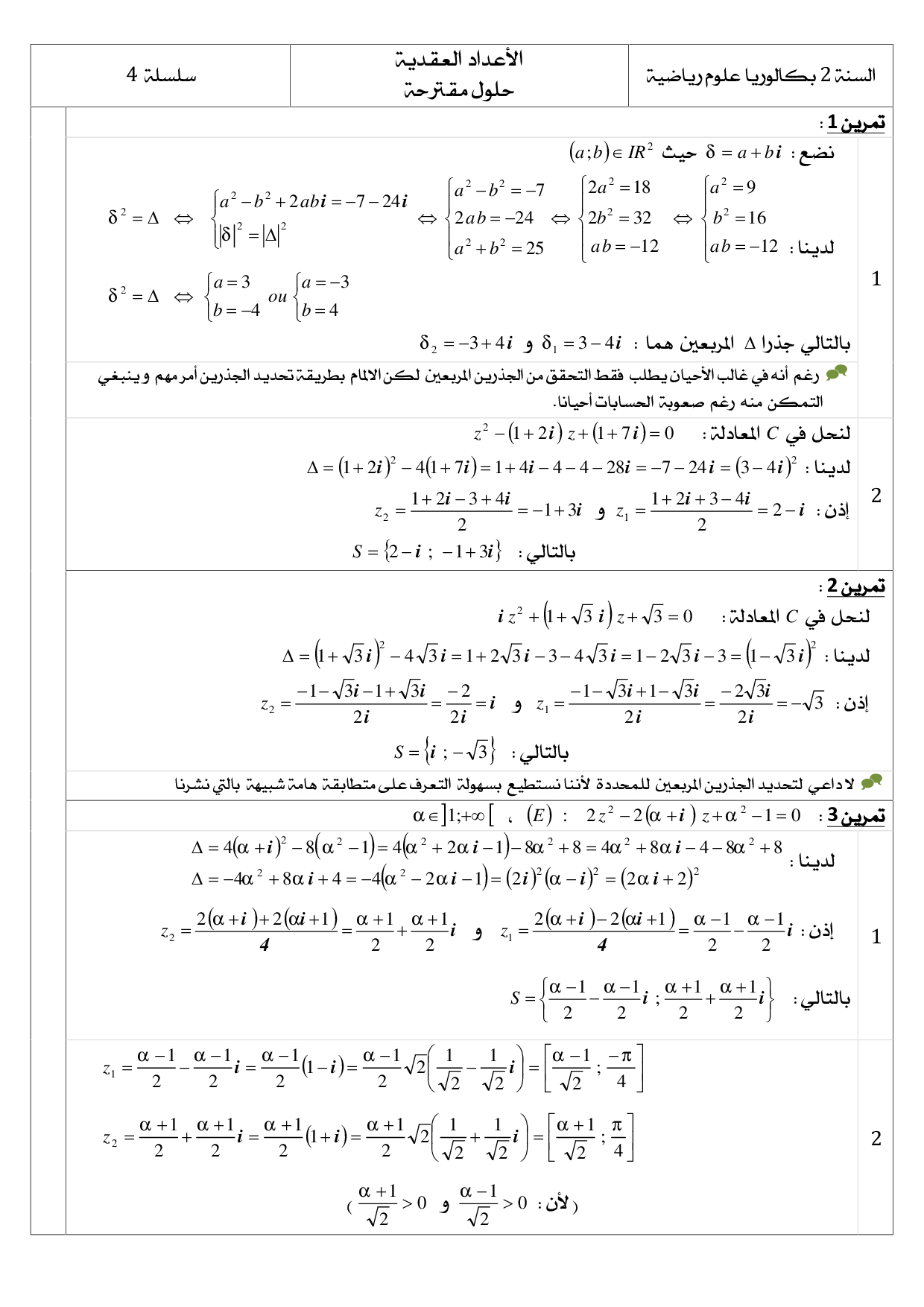 الأعداد العقدية - تصحيح سلسلة التمارين 4