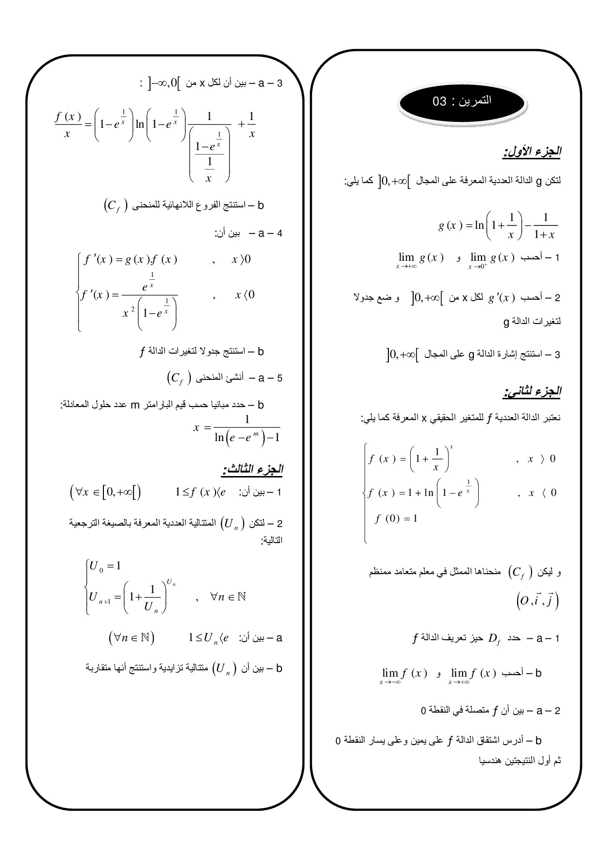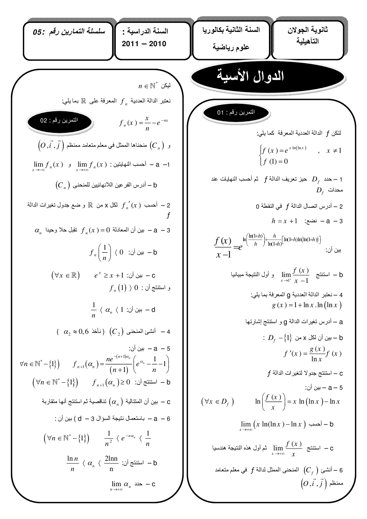 الدوال الأسية - تمارين غير محلولة 1